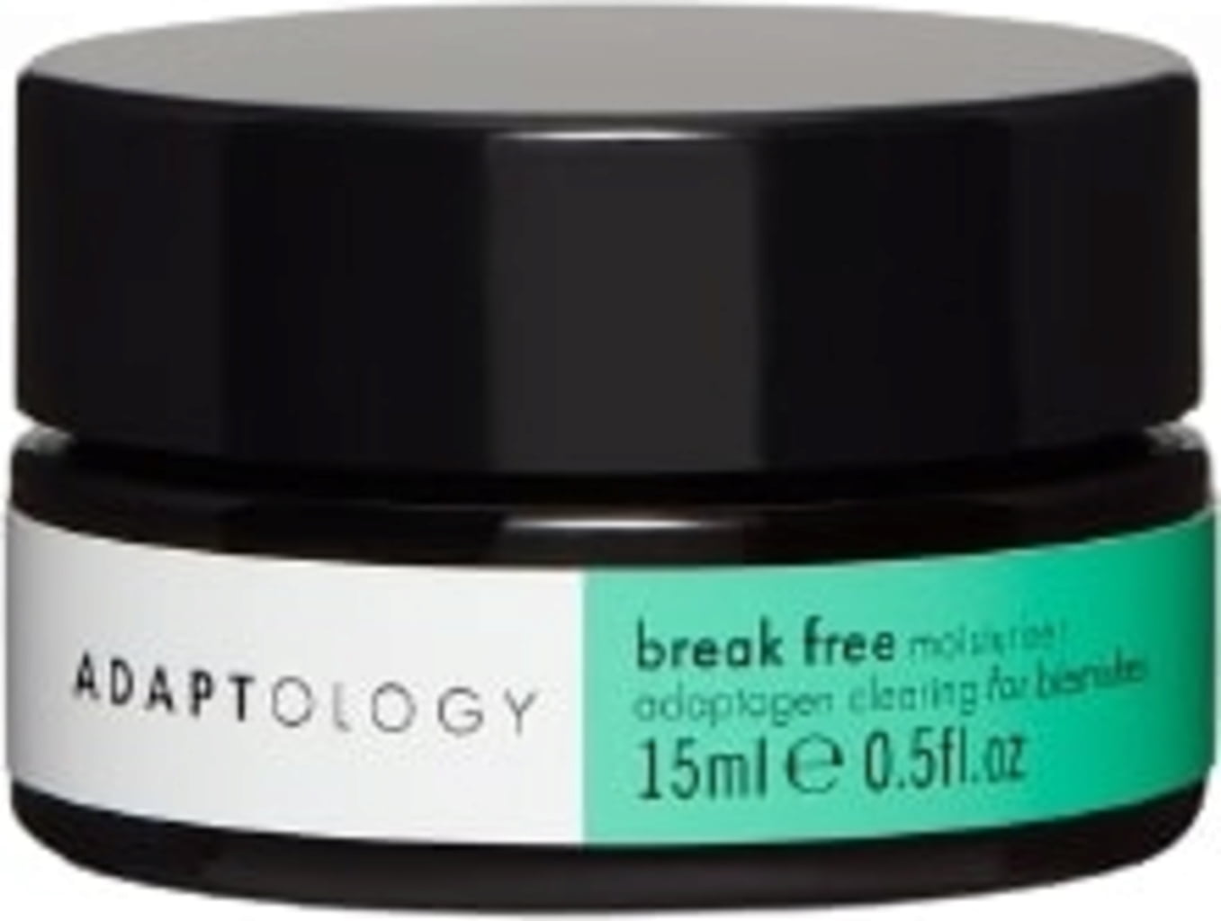 break free Moisturiser znamke Adaptology obnavlja ravnovesje nečiste ali mešane kože. Krema, ki vsebuje drobnocvetni vrbovec, izvleček vrbovega lubja in hialuronsko kislino, izboljša polt, neguje kožo in jo ščiti pred poškodbami, ki jih povzročajo prosti radikali, UV-sevanje in stres.