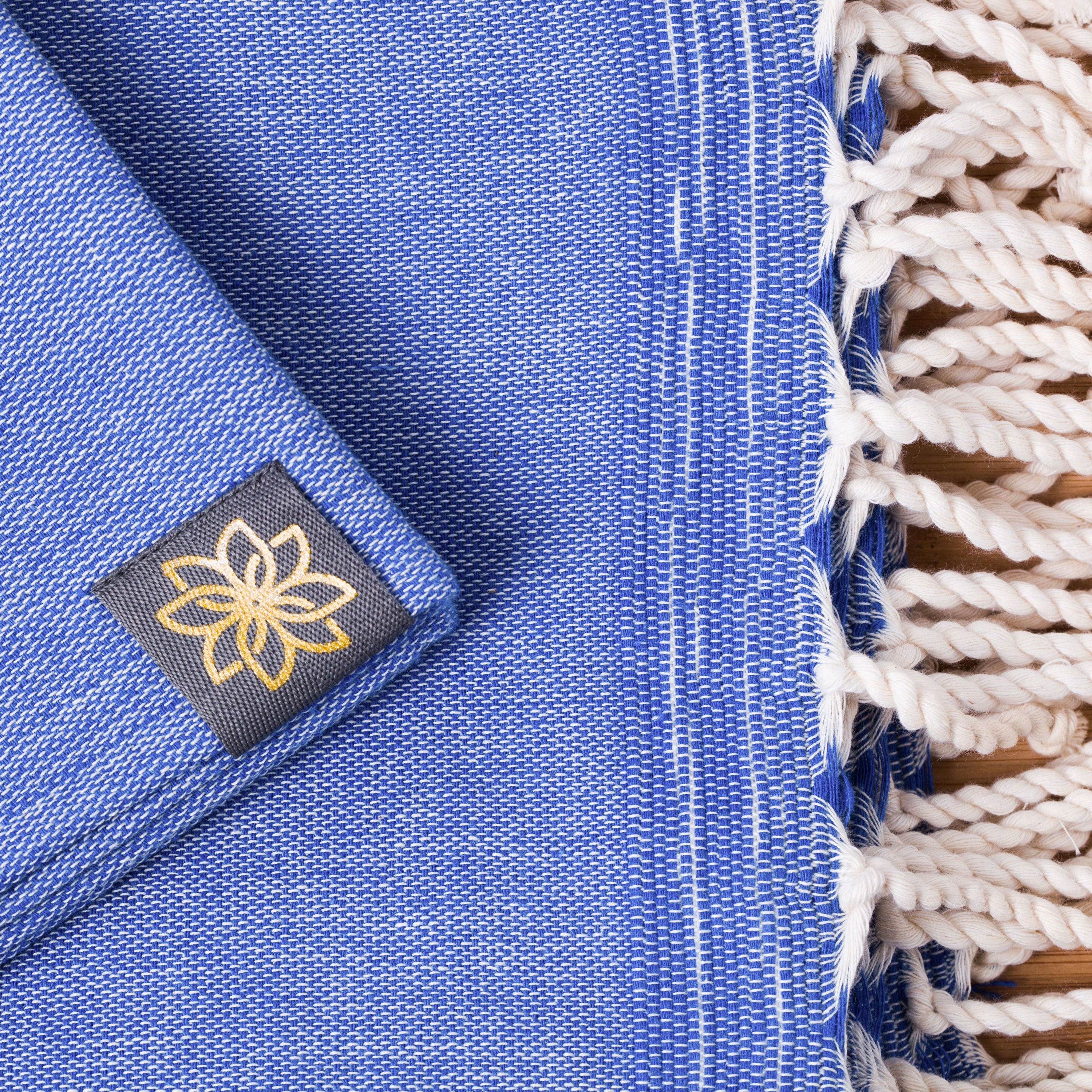 Vsaka brisača je edinstvena in etično izdelana, z ročno vozlanimi resicami, ki dajejo vsakemu kosu oseben, ročno izdelan pridih. Vsaka brisača, izdelana iz 100% recikliranega bombaža, prispeva k večji trajnosti. V vsako brisačo je vtkan našitek z jasminovim cvetom, emblemom ANNA ANIQ. Položaj na sredini šala je nameren: ta našitek vam omogoča, da brisačo varno obesite, tudi na najmanjši kaveljček, in tako zagotovite, da se nikoli ne dotakne tal!