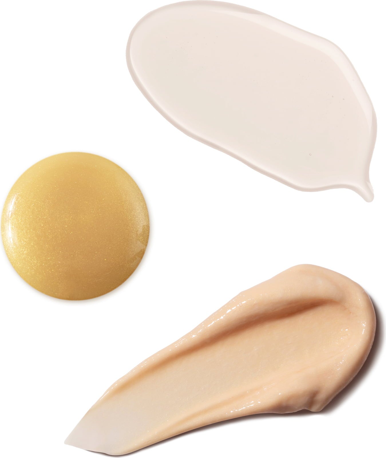 Aqua, Glycerin, Cetearyl Olivate, Sodium Acrylates Copolymer, Sorbitan Olivate, Bisabolol, Cetearylalcohol, Persea Gratissima (Avocado) Oil, Simmondsia Chinensis (Jojoba) Seed Oil, Limnanthes Alba (Meadowfoam) Seed Oil, Sodium Hyaluronate, Terminalia Ferdinandiana Fruit Extract, Bakuchiol, Phormium Tenax (Harakeke) Extract, Helianthus Annuus Seed Oil, Tocopherol (Vitamin E), Aloe Barbadensis (Aloe Vera) Leaf Juice Powder, 3-O-Ethyl Ascorbic Acid, Maltodextrin, Dextran, Nonapeptide-1, Lecithin, Citric Acid, Xanthan Gum, Sclerotium Gum, Pullulan, Sodium Citrate, Sodium Phytate, Glyceryl Caprylate, Sodium Benzoate, Gluconolactone, CI 77019, CI 77891 (Titanium Dioxid), CI 77491 (Iron Oxide), Silicia, Alcohol, Calcium Gluconate, Benzyl Alcohol, Butylene Glycol, Dehydroacetic Acid, Parfum, Limonene, Citrus Aurantium Peel Oil, Linalool, Coumarin, Pinene, Terpineol, Terpinolene