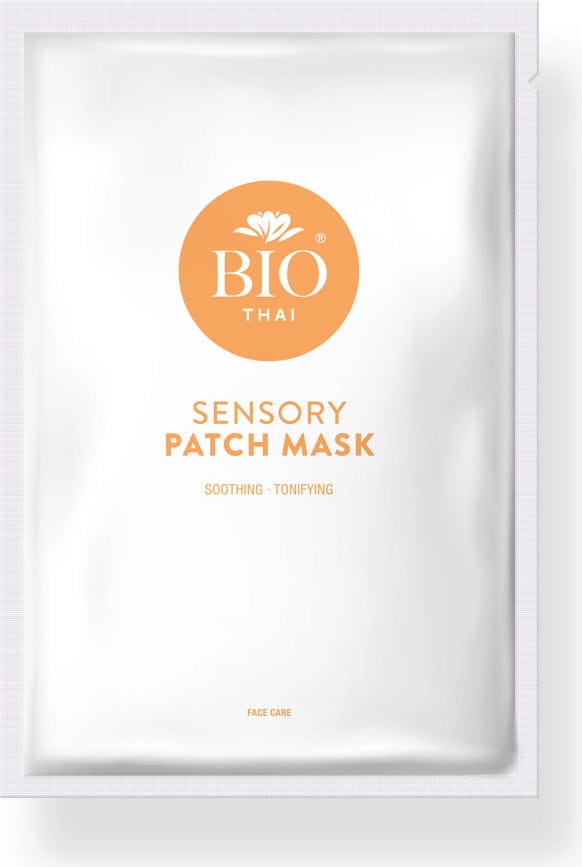 Sensory Patch Mask znamke Bio Thai je narejena iz 100% naravne tkanine, pridobljene iz rastlinskih vlaken kamelije. Njena sestava temelji na cvetovih kurkume, perile, riža, kamilice, slezenovca, baldrijana, rukole in opuncije, ki delujejo v sinergiji z eteričnimi olji ylang ylanga, evkaliptusa in pelargonije. To kožo takoj oskrbi z bistvenimi hranilnimi snovmi in hkrati dolgoročno stabilizira njeno ravnovesje vlage. Maska tudi reaktivira funkcije kože, zmanjšuje draženje in odpravlja znake utrujenosti. Takoj po uporabi se lahko veselite čudovitega rezultata: gladke, sijoče in enakomerne kože.