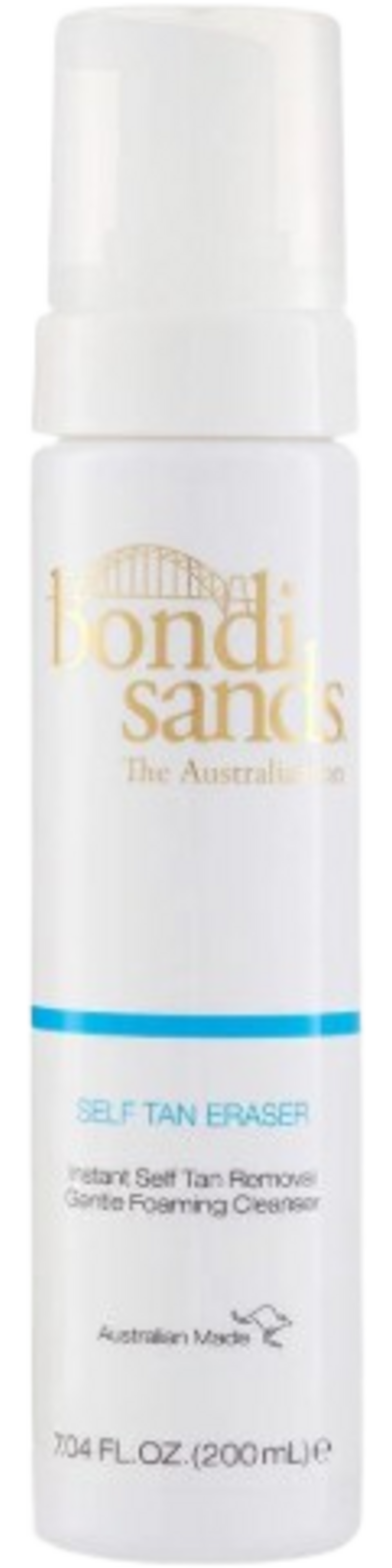 Self Tan Eraser znamke Bondi Sands odstrani samoporjavitev s kože v samo 5 minutah brez potrebe po močnem drgnjenju. Edinstvena, veganska formula odstranjevalca samoporjavitve je primerna za odstranjevanje porjavelosti ali pripravo kože na nov sloj samoporjavitve. Uporablja se lahko v kombinaciji z vsemi izdelki za samoporjavitev bondi sands.