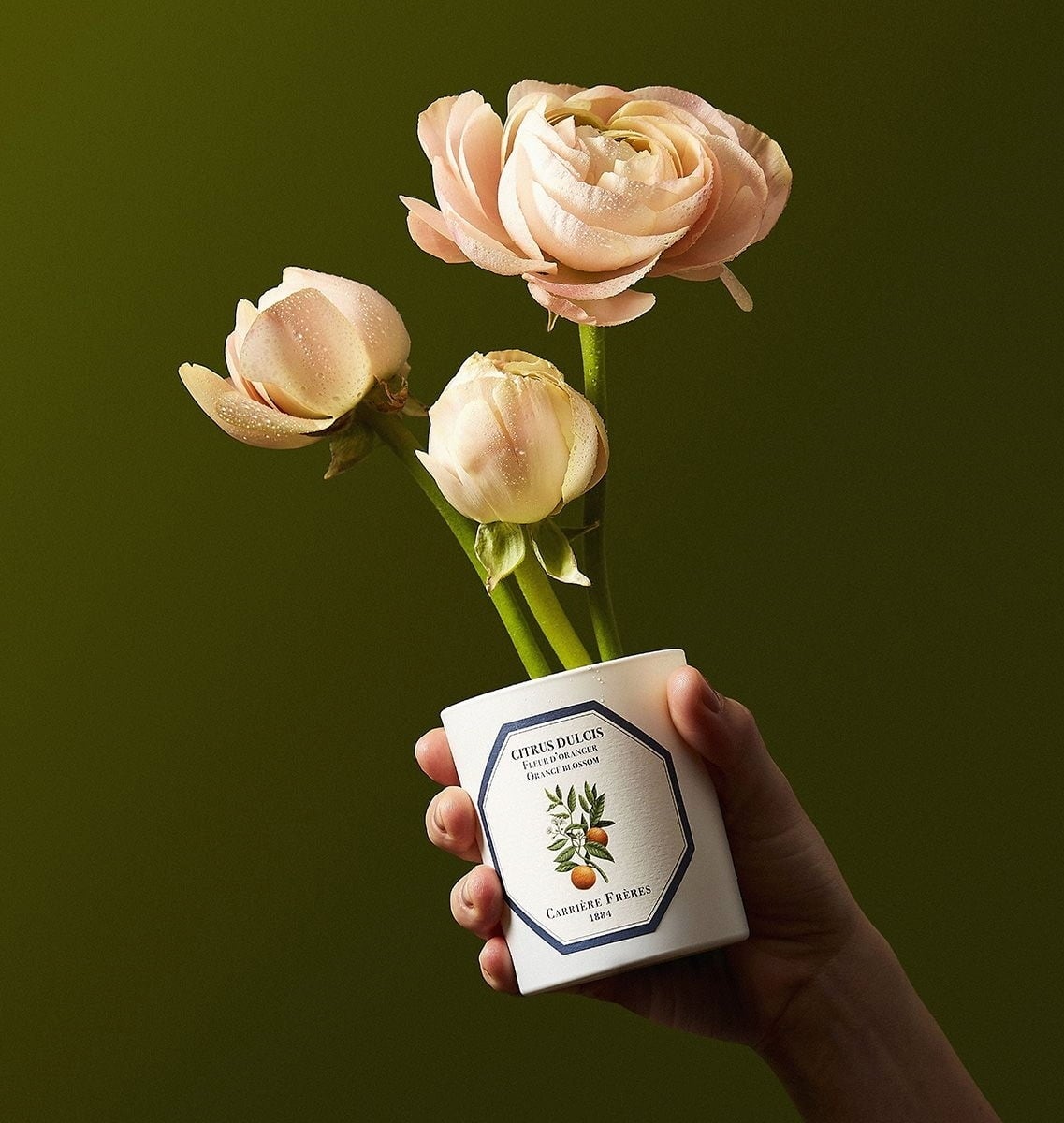 Scented Candle Orange Blossom znamke Carrière Frères oddaja sladko, pudrasto, cvetlično dišavo, ki uteleša poletno odo lahkotnosti in ženstvenosti. Pomarančni cvet, beli cvet, ki napoveduje tople dni, raste na drevesu grenke pomaranče in je bil v antičnih časih simbol čistosti in lepote: opojnega in diskretnega.