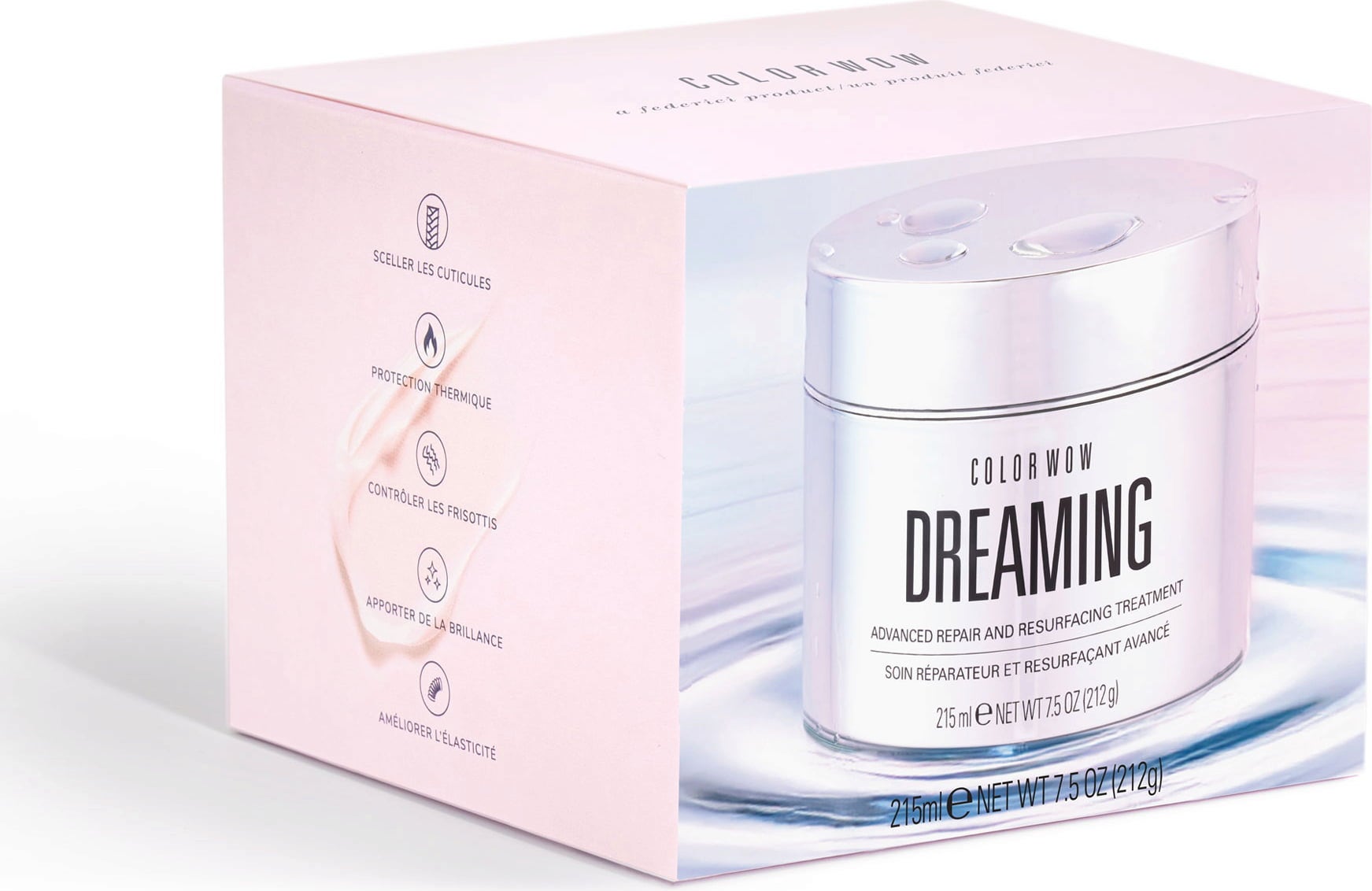 Z negovalnim tretmajem Dreaming znamke Color WOW boste dosegli voljne, gladke in lepo negovane lase. Zahvaljujoč bogati formuli nega ovije lase z vlago in zapre njihovo površino. To ščiti lase, obnavlja poškodovane strukture in gladi skodrane konice. Peresno lahka tekstura zagotavlja ultra svilnat videz.