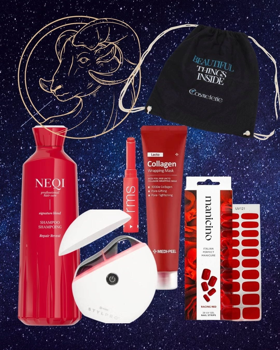 Ekskluzivni kozmetični set Zodiac Beauty Set, ki ga navdihuje element ognja, združuje izrazite rdeče odtenke, visoko učinkovite izdelke za nego in pripomočke za oblikovanje za samozavesten ter močan nastop. Intenzivne barve, gladilne teksture in viden sijaj poudarijo naravno vodstveno moč tega znamenja. Idealno za strastne osebnosti, ki pogumno stopajo naprej in rade postavljajo jasne poudarke.