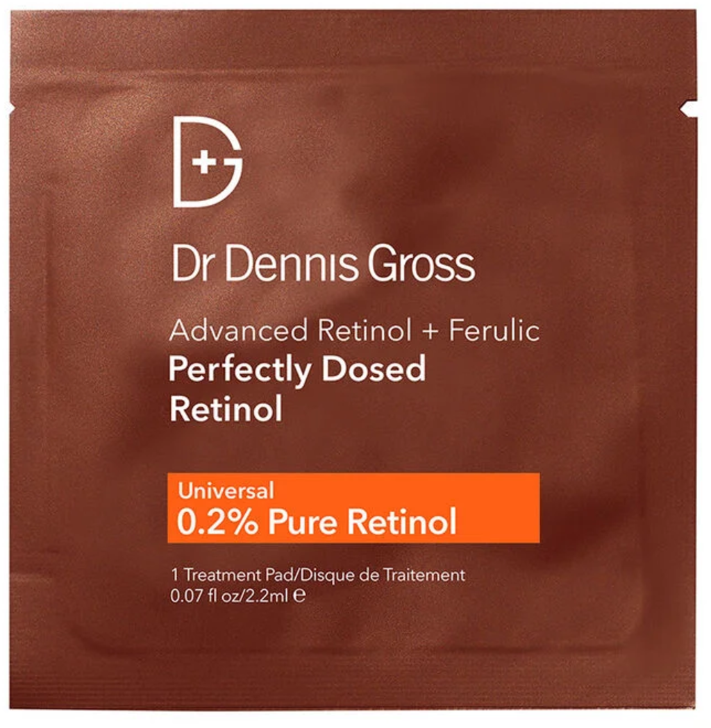 Advanced Retinol+Ferulic Perfectly Dosed Retinol znamke Dr Dennis Gross vsebuje popolno odmerjeno mešanico retinola, bakuchiola, rambutana in ferulinske kisline in je zasnovan za večerno uporabo 2- do 3-krat na teden. Formula se bori proti trdovratnim nečistočam in sebumu, hkrati pa zmanjšuje drobne linije in gube. Izvleček kumare, skvalan in hialuronska kislina dopolnjujejo formulo in ščitijo pred prostimi radikali, zagotavljajo pravo ravnovesje vlage in vas nagradijo s sijoče gladko poltjo svežega videza.