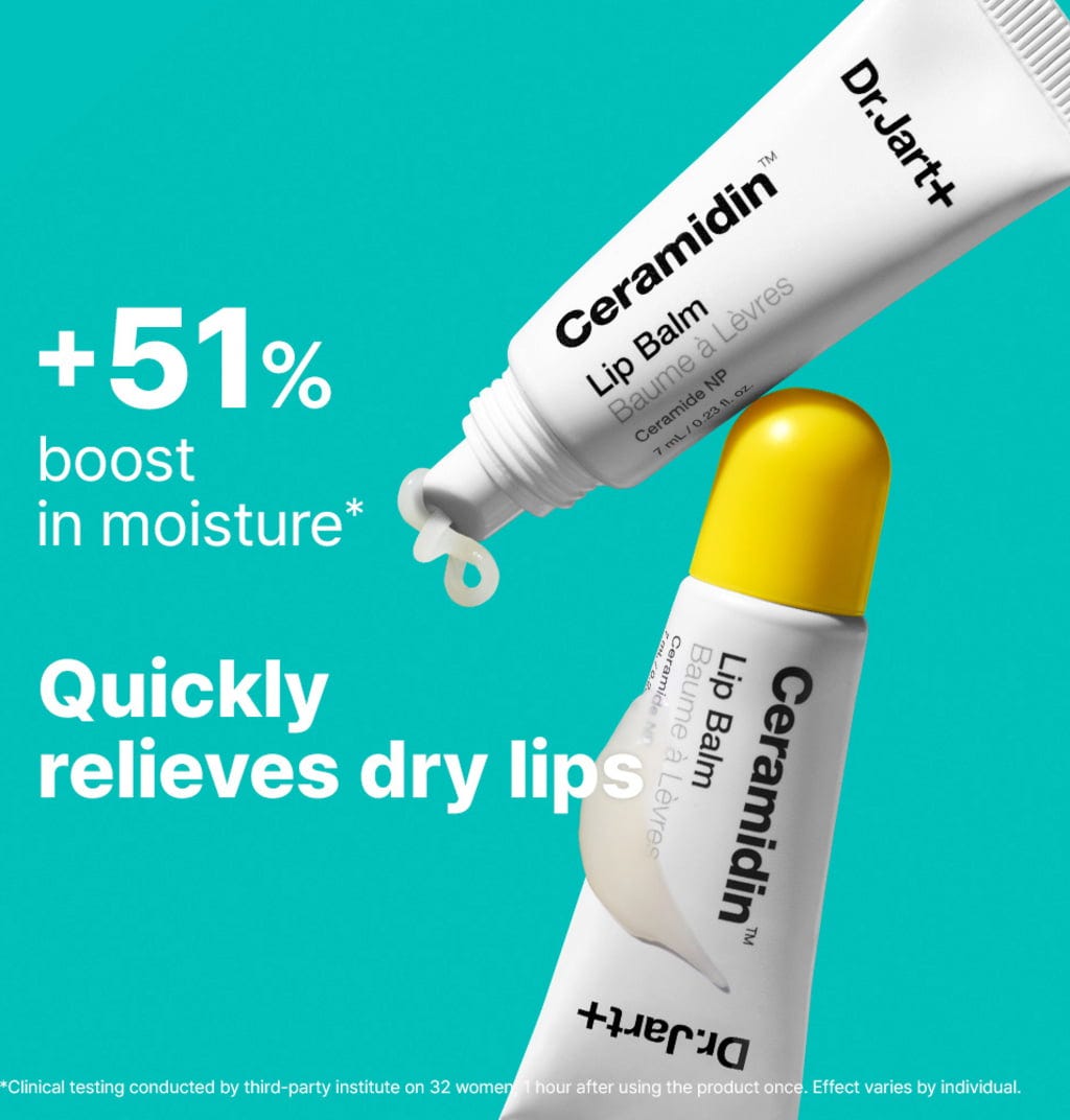 Balzam za ustnice Ceramidin™ proizvajalca Dr. Jart+ je intenzivno vlažilni gelski balzam s ceramidi, ki poskrbi za izjemno mehke in nahranjene ustnice. Nanaša se brez težav ter zagotavlja takojšnjo in dolgotrajno vlaženje. Balzam lahko uporabljate samostojno ali ga kombinirate z najljubšim izdelkom za ustnice, da dosežete sijoč videz.