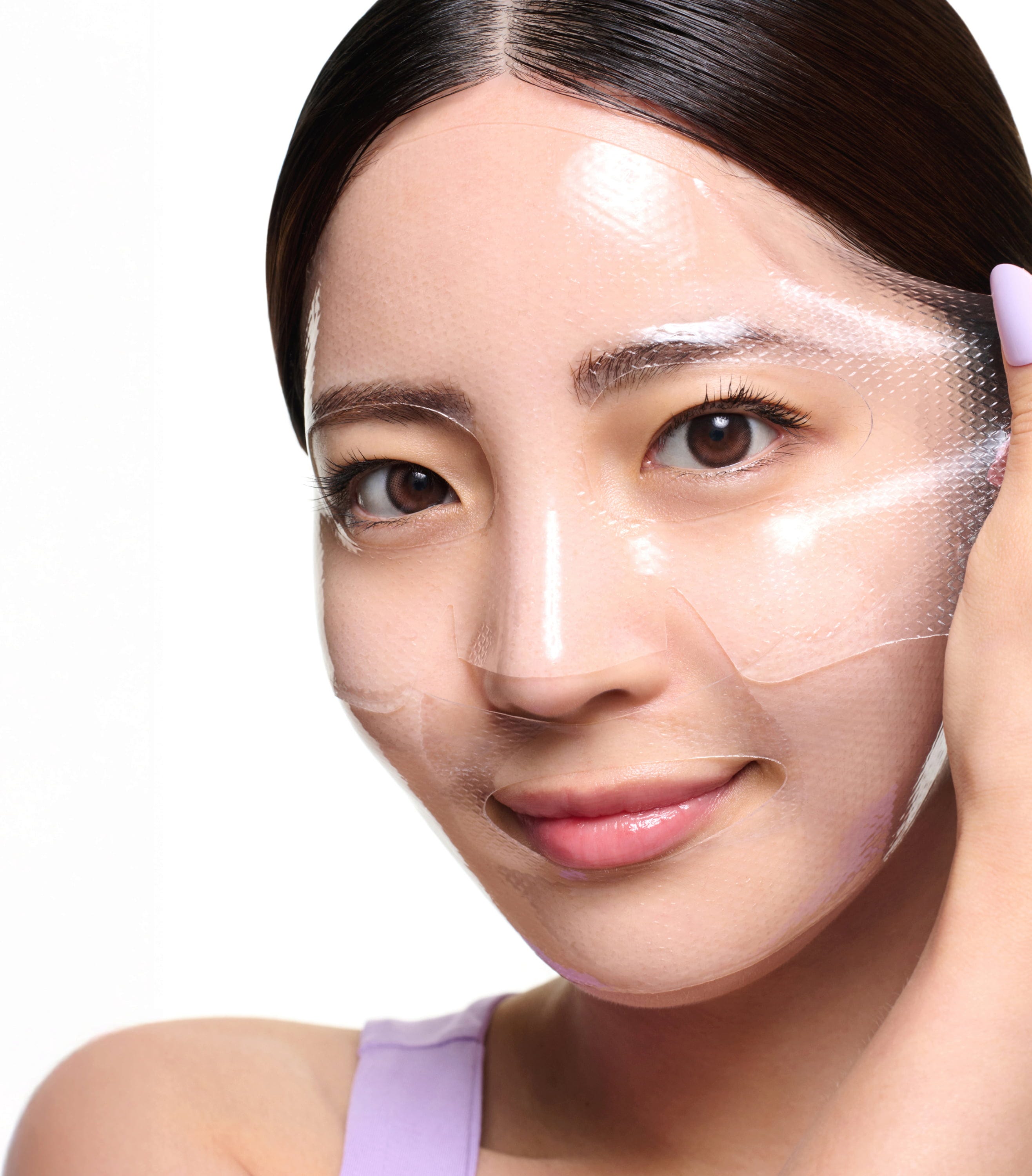 - Previdno odstranite zaščitno folijo s hidrogelne maske.