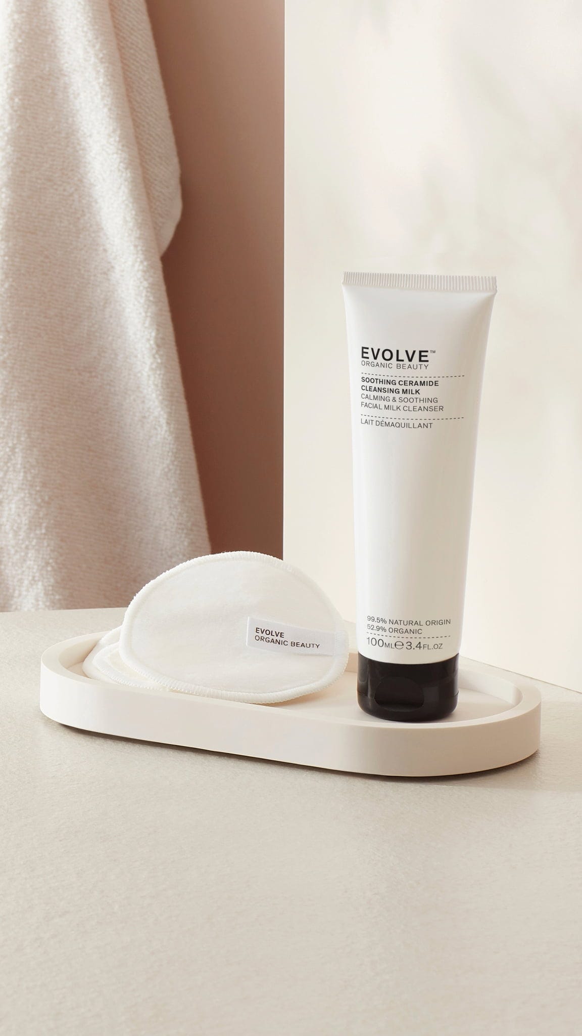 Evolve Organic Beauty Pomirjujoče mleko za čiščenje s ceramidi, 100 ml