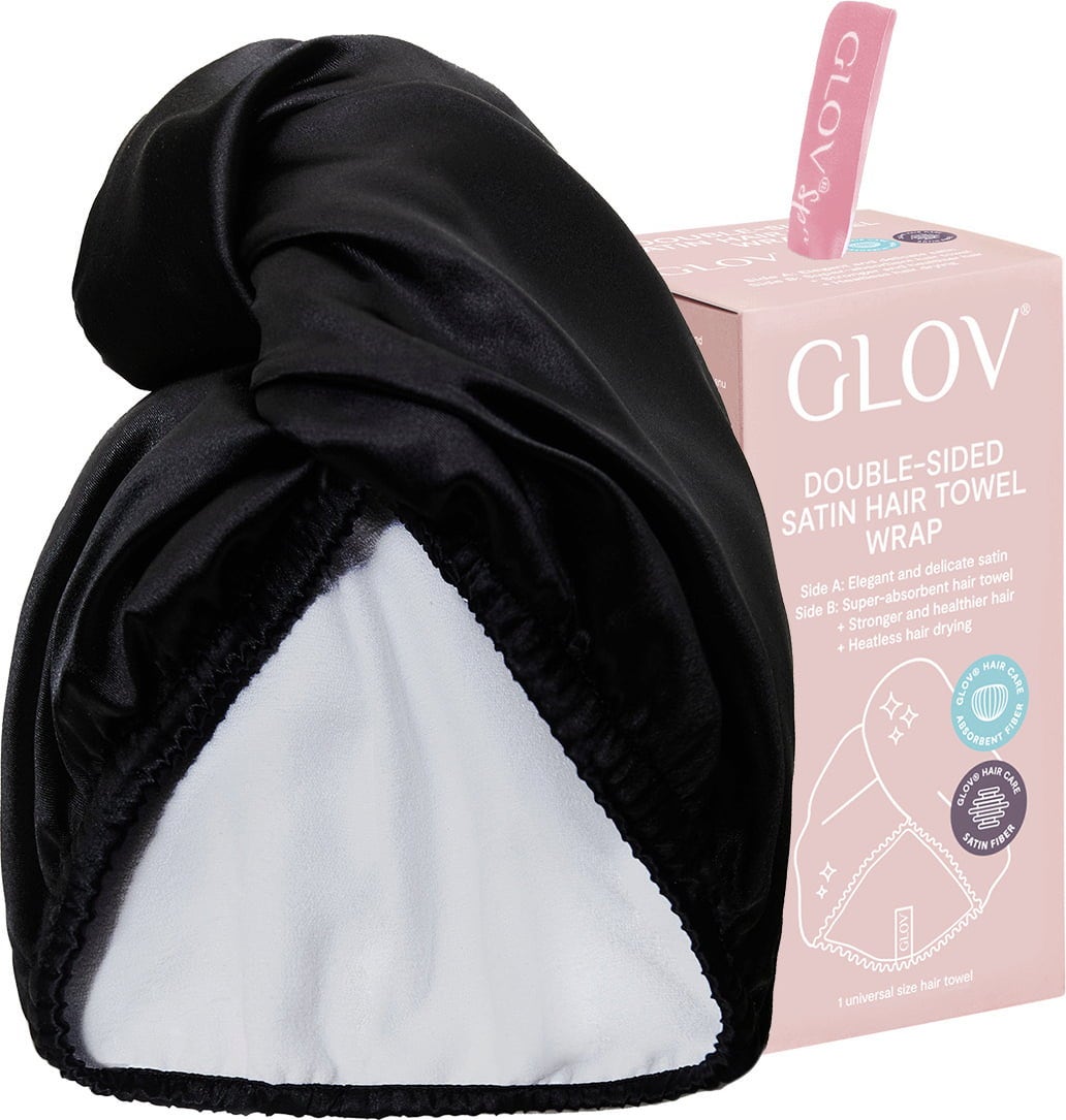 GLOV Double-Sided Satin Hair Towel Wrap, Black