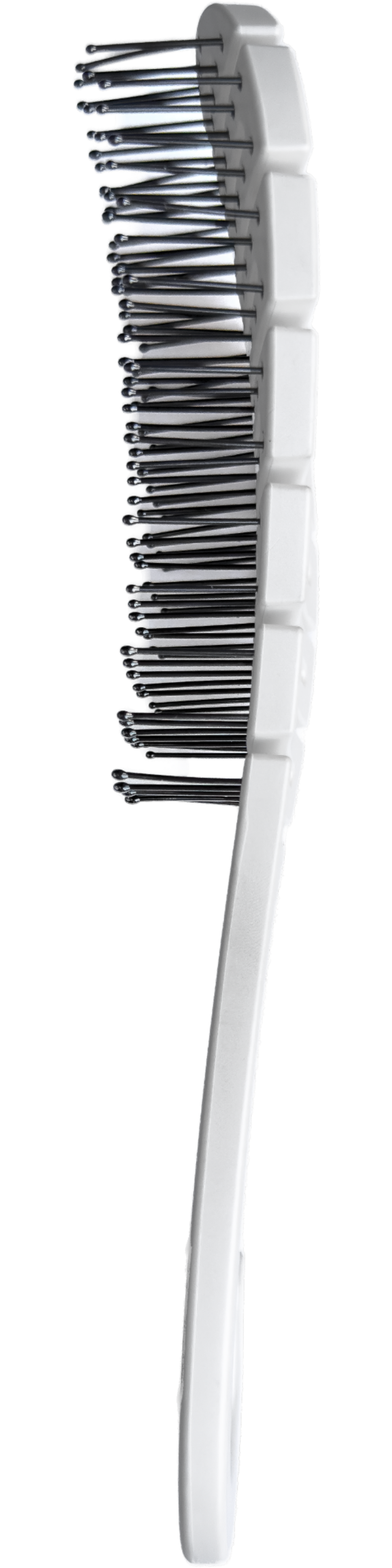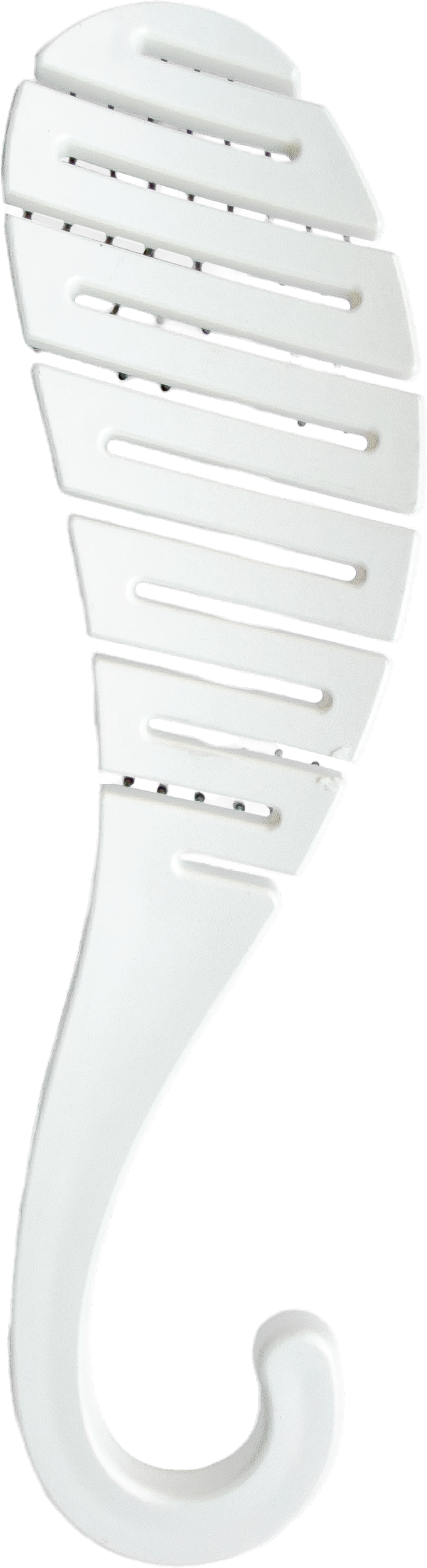 Krtača HangTight Brush je zasnovana tako, da ostane na mestu – kjer koli želite – le ne v laseh! Njene fleksibilne ščetine z zaobljenimi konicami še posebej gladko drsijo skozi lase ter jih razvozlajo brez napora in bolečin. Ergonomski ročaj zagotavlja varen oprijem, oblika kljuke pa zagotavlja, da krtača ostane točno tam, kjer želite: na nosilcu za prho, stojalu za brisače ali obešalniku za brisače v kopalnici.
