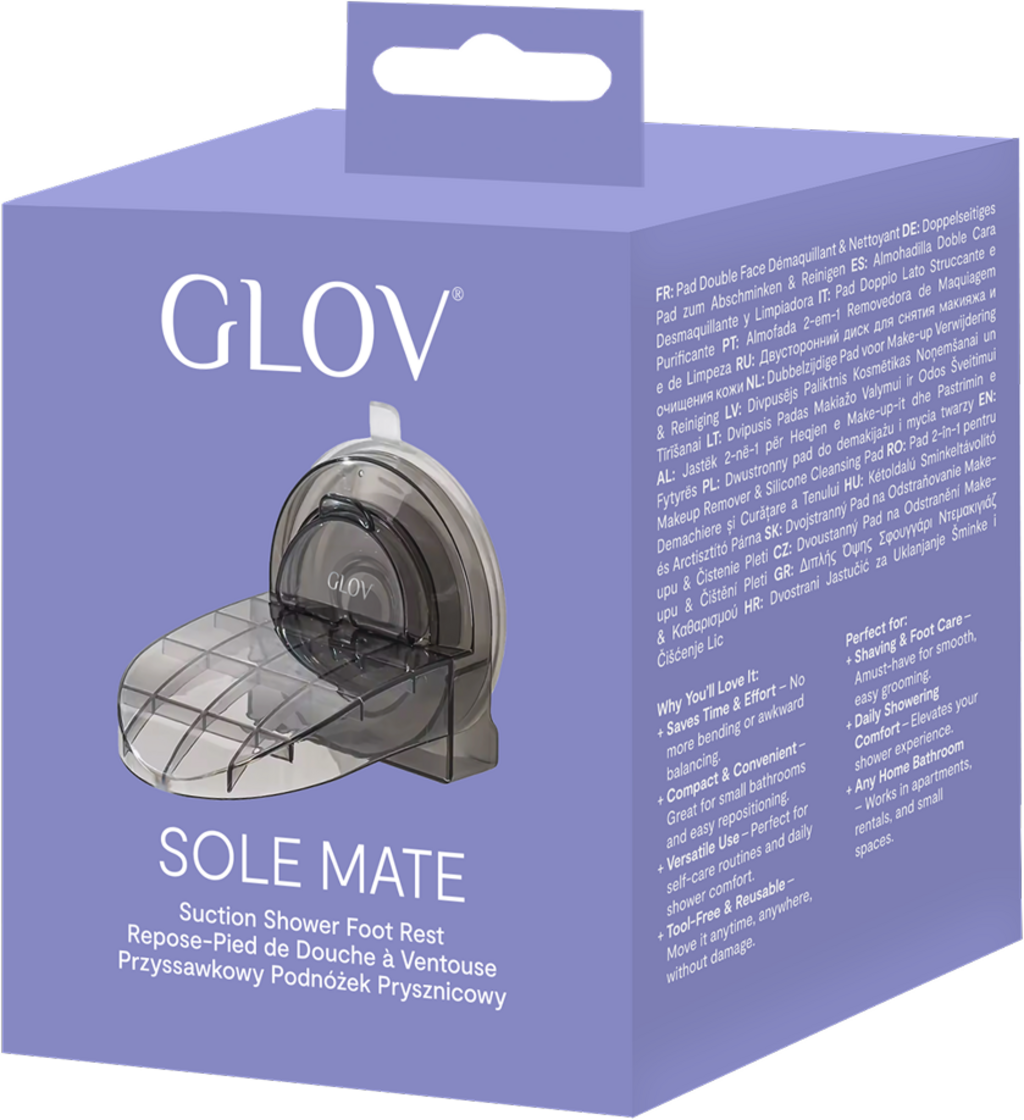Prisesalni naslon za noge Sole Mate znamke GLOV zagotavlja varen oprijem pod prho, ne glede na to, ali se brijete ali delate piling. Tako vam nikoli več ne bo treba stati na eni nogi. Naslon za noge ima prisesek, ki zagotavlja stabilnost zaradi vakuumskega mehanizma. Ni potrebno orodje ali vrtanje, pripomoček pa lahko kadar koli spremenite. Nedrseča površina zagotavlja varnost, minimalistična oblika pa se prilega vsaki kopalnici.