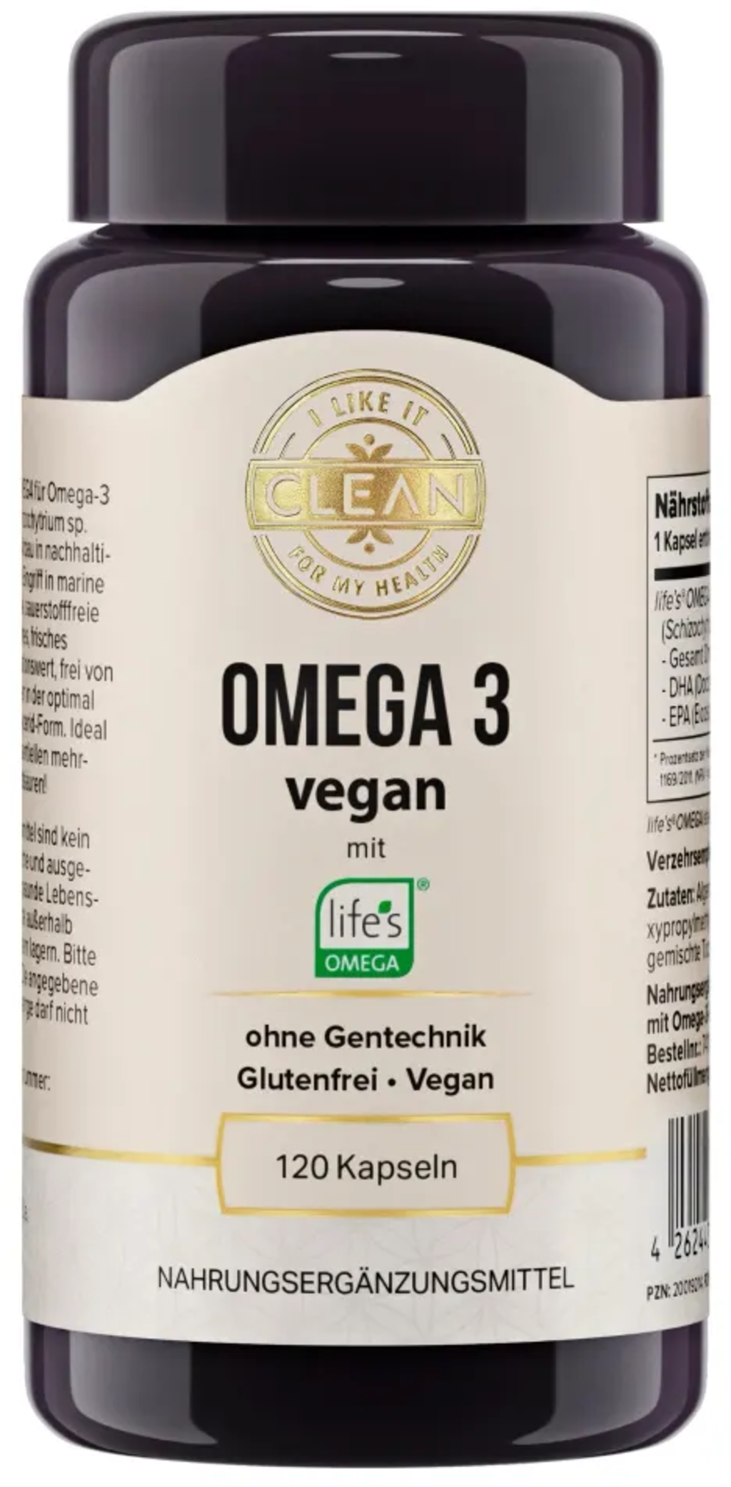 Omega 3 vegan znamke i like it clean zagotavlja aktivne omega-3 maščobne kisline neposredno iz alg. Vsaka kapsula vsebuje 182,5 mg DHA in 50 mg EPA, pridobljenih iz mikroalge Schizochytrium sp. Olje iz alg prihaja iz certificirane znamkine surovine life's® OMEGA. Izdelek ne vsebuje živalskih sestavin, sončničnega olja, glutena in GSO.