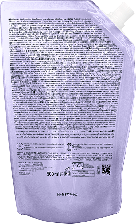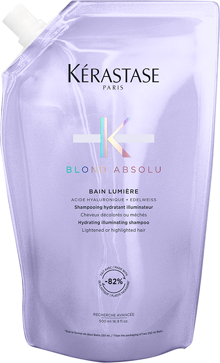 Paket za ponovno polnjenje Blond Absolu Bain Lumière blagovne znamke Kérastase vam ponuja možnost trajnostnega polnjenja vašega najljubšega šampona.Visokokakovostna formula šampona je bila zasnovana posebej za svetle lase, da jim pričara naravni sijaj in pomaga okrepiti barvo. Šampon zagotavlja intenzivno čiščenje in krepi lasna vlakna z ustrezno vlago.
