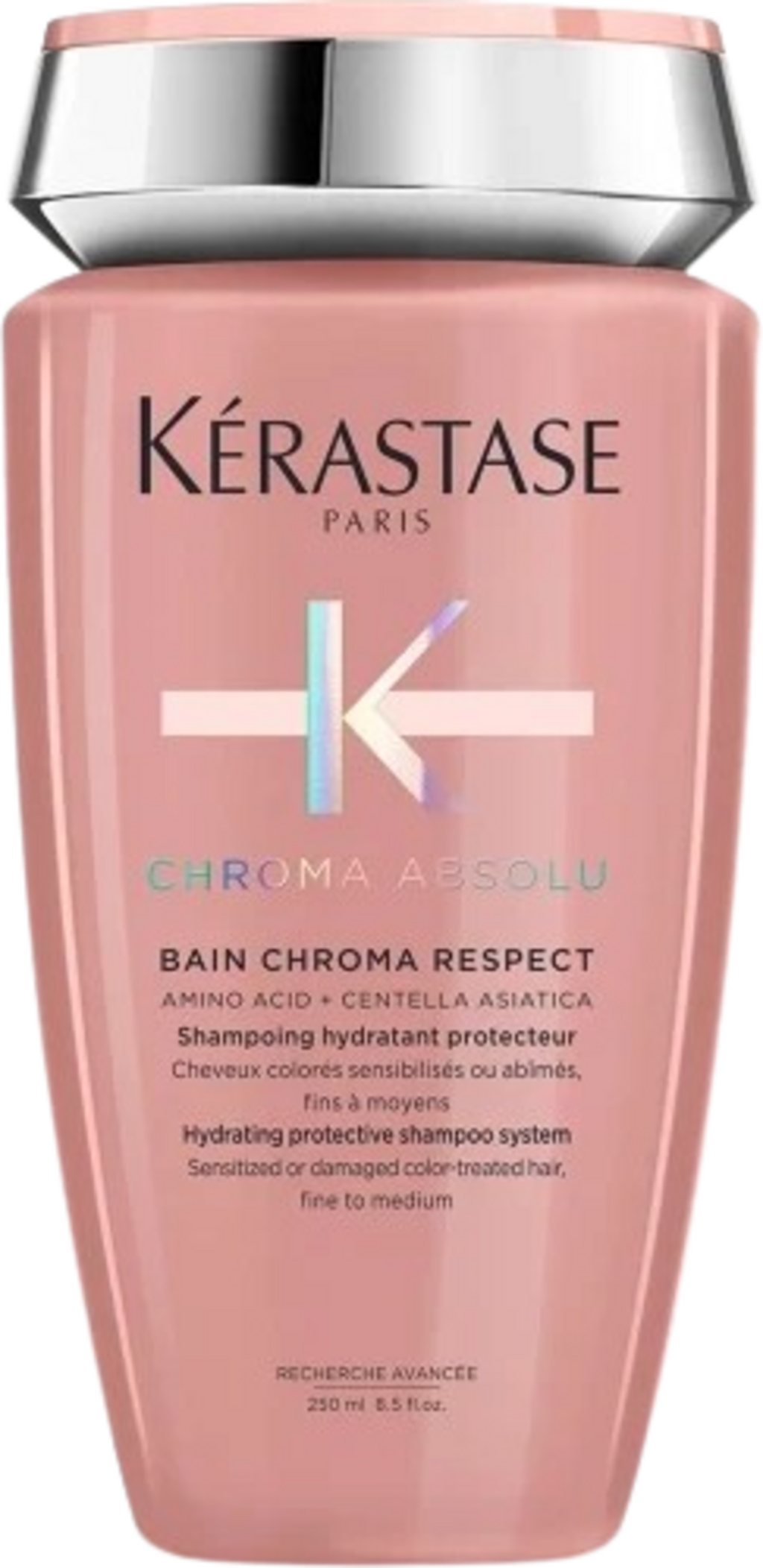 Šampon Bain Chroma Respect znamke Kérastase nežno čisti in vlaži poškodovane in barvane lase. Njegova optimalna nega obnavlja površino las. Poleg tega šampon brez sulfatov poveča sijaj in živahnost barve las.