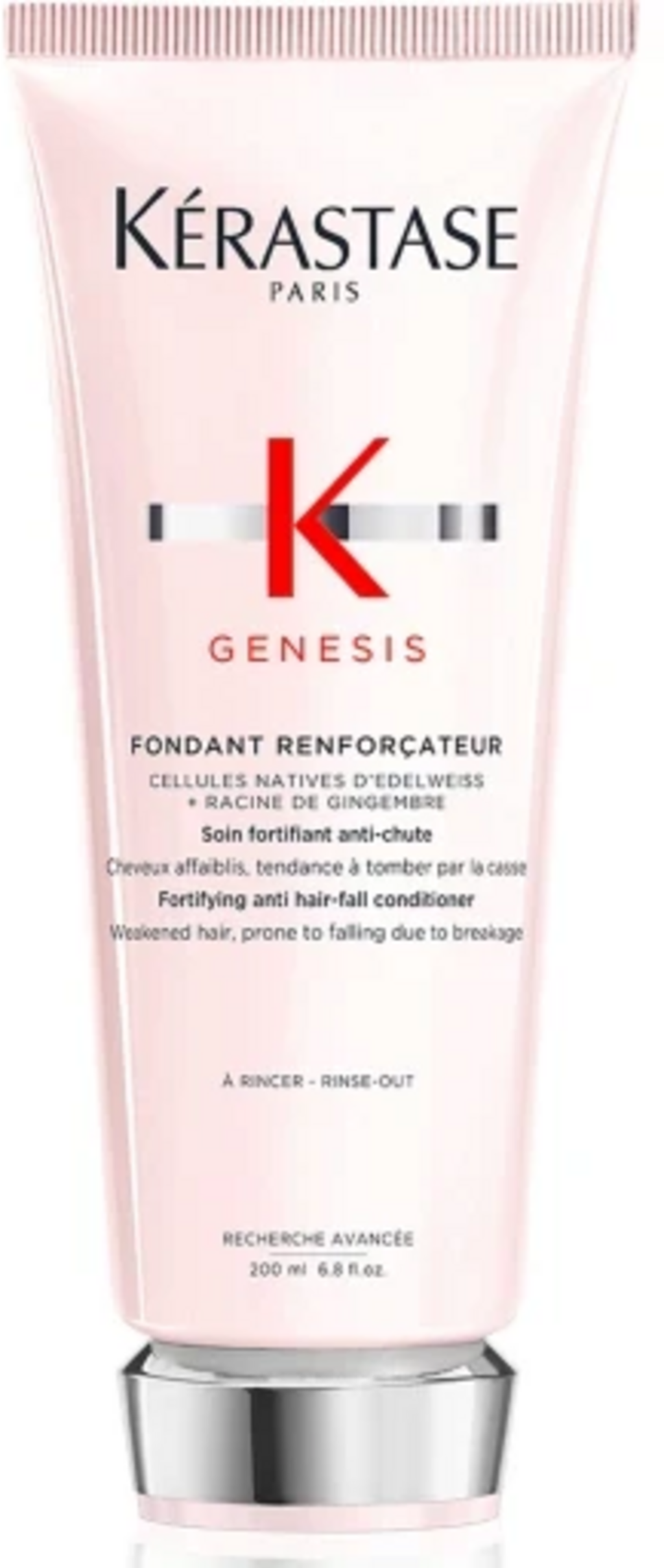 Balzam Genesis Fondant Renforçateur znamke Kérastase krepi še posebej tanke in poškodovane lase, začenši pri lasišču.