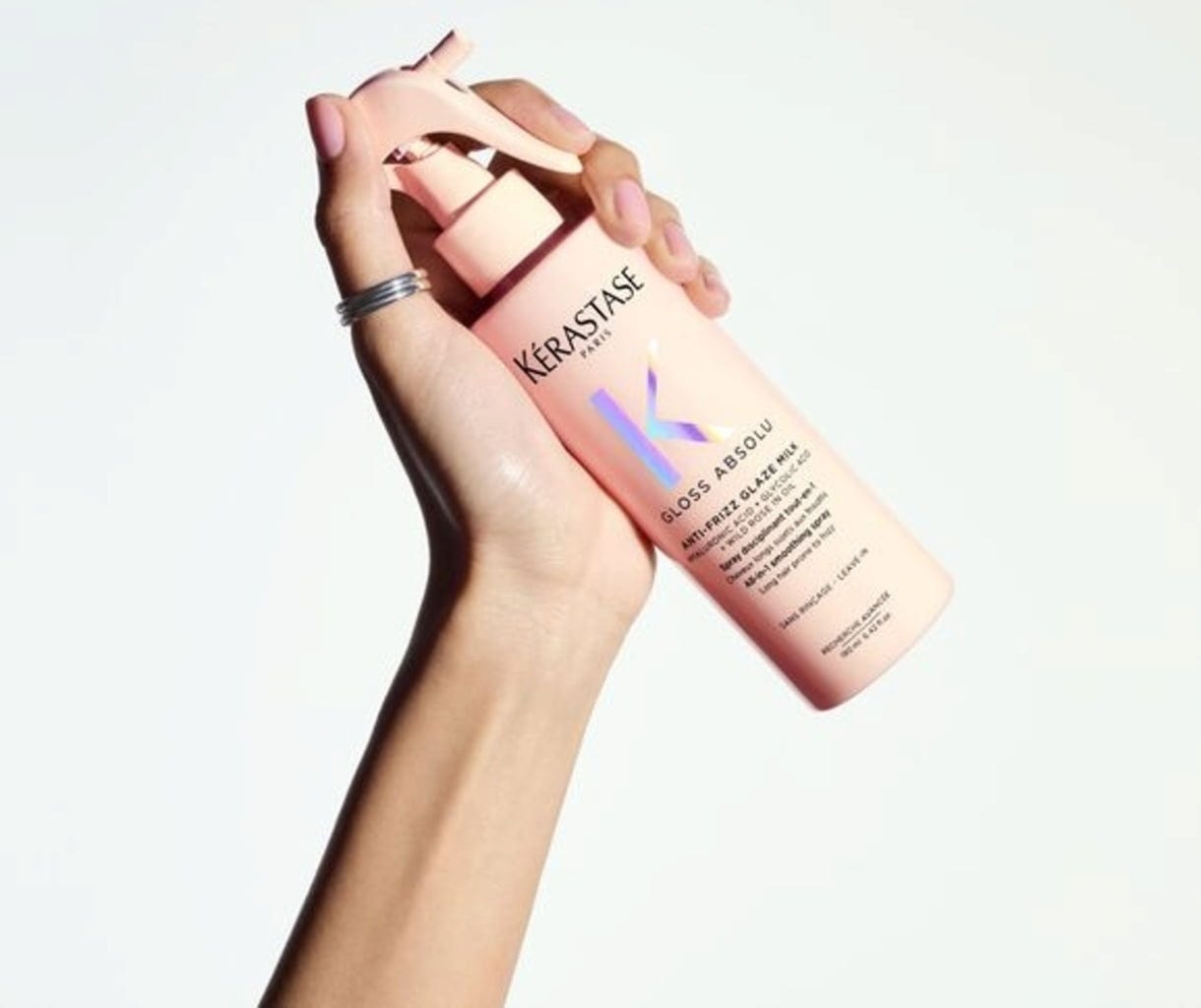 Gloss Absolu Anti-Frizz Glaze Milk Spray znamke Kérastase je nepogrešljivo vsestransko pršilo za sijaj, ki dolge in neukrotljive lase spremeni v tekočo, sijočo pričesko. Lahka formula s hialuronsko kislino, glikolno kislino in izvlečkom divje vrtnice se kot zaščitna tančica ovije okoli vsakega posameznega lasnega vlakna. Nega podari takojšnjo vlažnost in poskrbi za bistveno boljše razčesavanje, s čimer vsakodnevno oblikovanje postane povsem enostavno. Hkrati pršilo deluje kot pomirjujoč zaščitni ščit, ki štiri dni napoveduje boj kodranju las in vlagi v zraku. Ne glede na sušenje ali ravnanje – lasje so zanesljivo zaščiteni pred vročino do 230 °C. Uživajte v gladkem občutku in briljantnem učinku laka, ki lase popolno poravna in poskrbi za sijaj. Za maksimalen sijaj se priporoča kombinacija z drugimi izdelki linije Gloss Absolu znamke Kérastase.