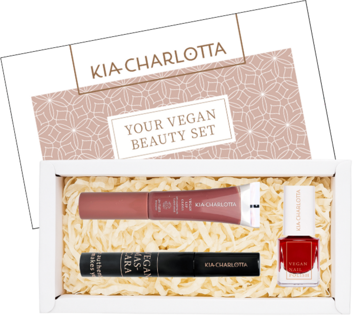 Božični set Essentials znamke Kia-Charlotta vsebuje vse, kar potrebujete za čudovit praznični videz: črno maskaro, sijoč bleščilo za ustnice in eleganten rdeč lak za nohte - božični sijaj je zagotovljen!