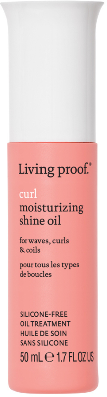 Curl Moisturizing Shine Oil znamke Living Proof je sestavljeno iz petih različnih olj in je bilo posebej razvito za valovite, kodraste in zelo skodrane lase. Gre za olje brez silikona, ki lasem daje dodaten sijaj in vlago ter tako spodbuja obvladljivost. Olje tudi ščiti pred krepavostjo in gladi strukturo las.