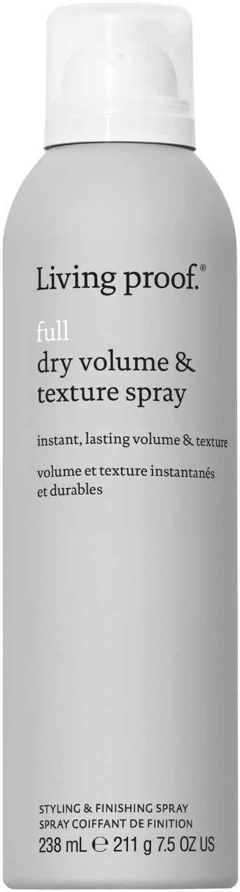Full Dry Volume & Texture Spray znamke Living Proof je posebej zasnovan za tanke, fine in brezvoljne lase, primeren pa je tudi za vse, ki si želijo več volumna in teksture. Zagotavlja takojšnjo, osvežilno in dolgotrajno polnost ter čudovito teksturo. Sprej ponuja tudi nadgradljivo, nedrsečo fiksacijo za vsestransko oblikovanje in zaščito pred toploto do 210 °C. Formula vpije odvečno olje in podaljša obstojnost vašega videza. Sprej je zasnovan za uporabo na suhih laseh, zaradi česar je popoln za kadar koli in kjer koli.