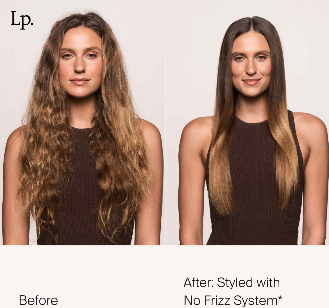 Cosmeterie nasvet: Za goste in močne lase je priporočljivo, da najprej vmasirate kremo za oblikovanje las v vlažne lase in nato uporabite No Frizz Smooth Styling Serum znamke Living Proof.