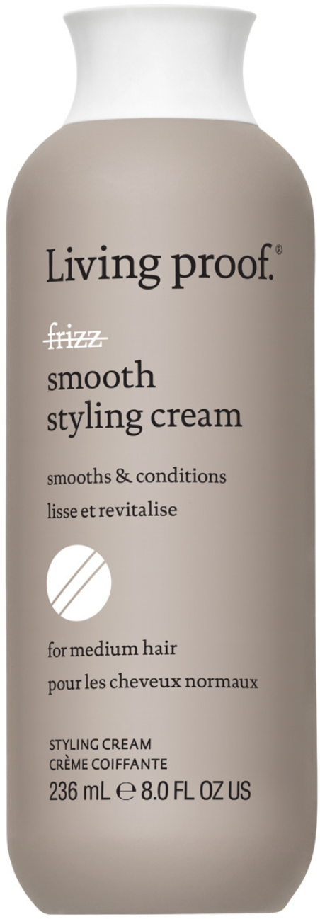 No Frizz Smooth Styling Cream znamke Living Proof je izdelek za oblikovanje las za srednje dolge lase, ki ustvari gladek videz z zmanjšanjem frizza in glajenjem las. Formula neguje lase od korenin do konic, jim doda sijaj in olajša obvladovanje. Krema nudi zaščito pred vlago in vročino do 232 °C, zato jo lahko samozavestno uporabite pred toplotnim oblikovanjem. Uživajte v razvozlavajočem učinku, ki olajša česanje in oblikovanje.