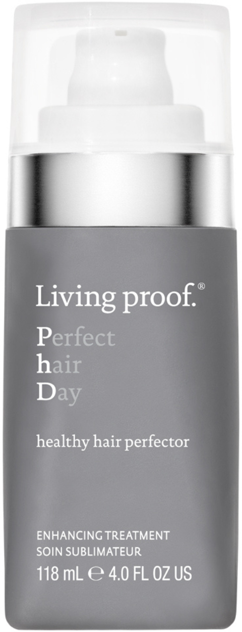 Perfect hair Day™ Healthy Hair Perfector znamke Living Proof je lahka nega, ki obnovi zunanjo zaščitno plast las, zaradi česar so suha, krhka in poškodovana lasna vlakna mehkejša, sijoča in lažje obvladljiva. Formula se hitro vpije in vsebuje negovalno sredstvo, ki poveča sijaj in zagotavlja antioksidante za zaščito las pred UV-žarki, onesnaženjem in drugimi škodljivimi okoljskimi dejavniki. Nega obnavlja lipide las in ščiti pred vlago, da prepreči frizz. Prav tako izboljša obvladljivost in oblikovanje.