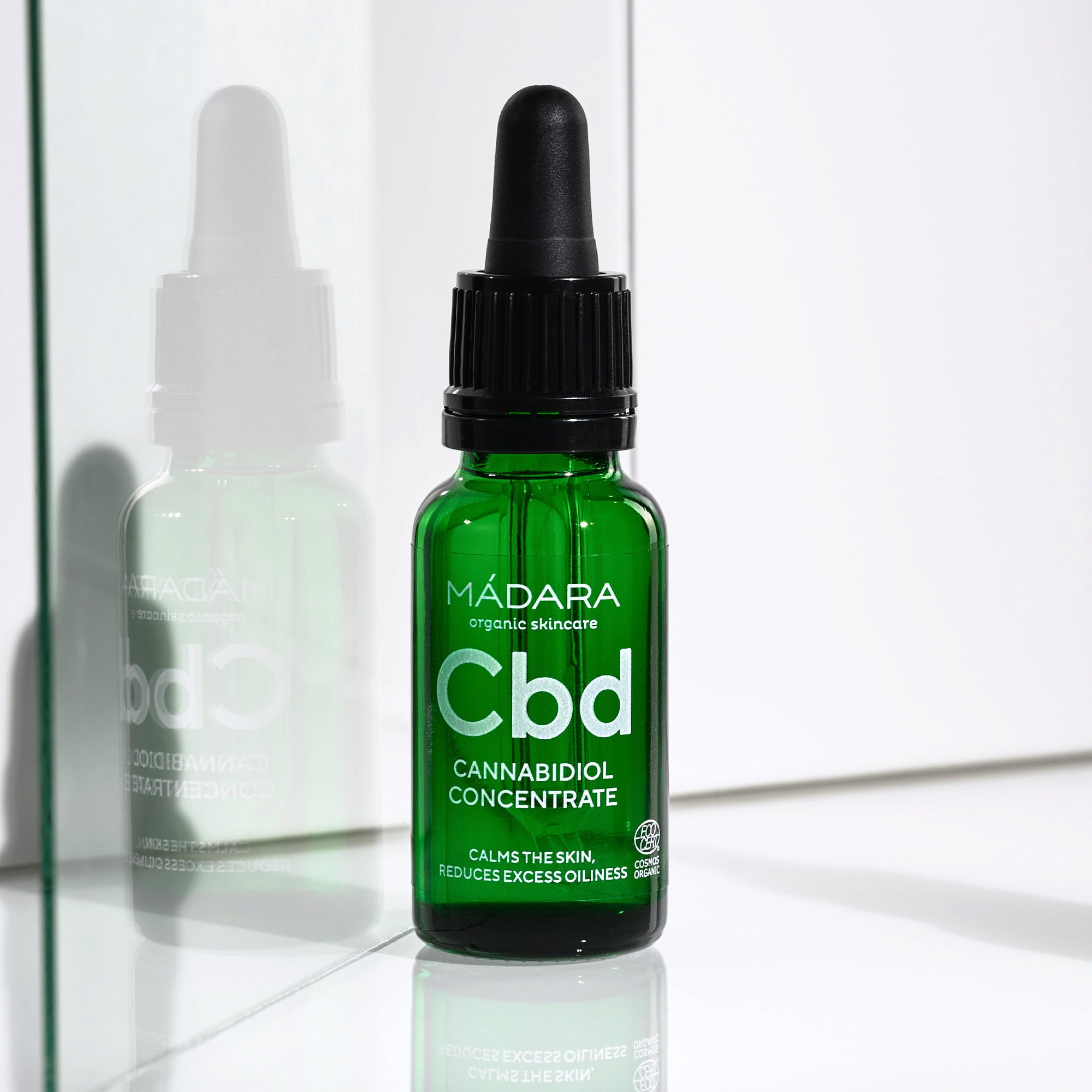 Custom Actives Cannabidiol Concentrate znamke MÀDARA vsebuje naravni CBD za nego in hranjenje problematične kože. Mešana, mastna, občutljiva in k aknam nagnjena koža še posebej potrebujejo dodatno nego. Serum Cannabidiol je za to popoln: ponuja uravnalne, seboregulacijske in intenzivno negovalne lastnosti kot dopolnilo običajni vlažilni kremi.