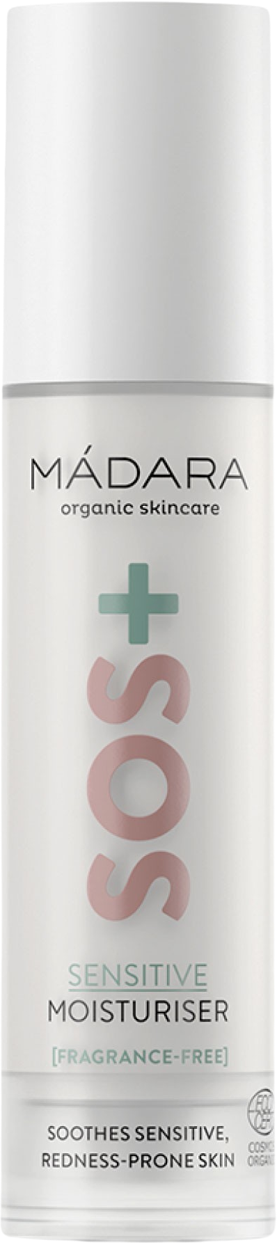 SOS+ Sensitive Moisturizer znamke MÀDARA je lahka, neodišavljena krema za obraz, ki zagotavlja optimalno dnevno nego za razdraženo, občutljivo in obremenjeno kožo. Zagotavlja vlago in z izvlečki rdečih alg in hialuronsko kislino zagotavlja prijeten občutek na koži. Izvlečki alg v obliki biotehnološko pridobljenih molekul nudijo uravnalne in zaščitne lastnosti.