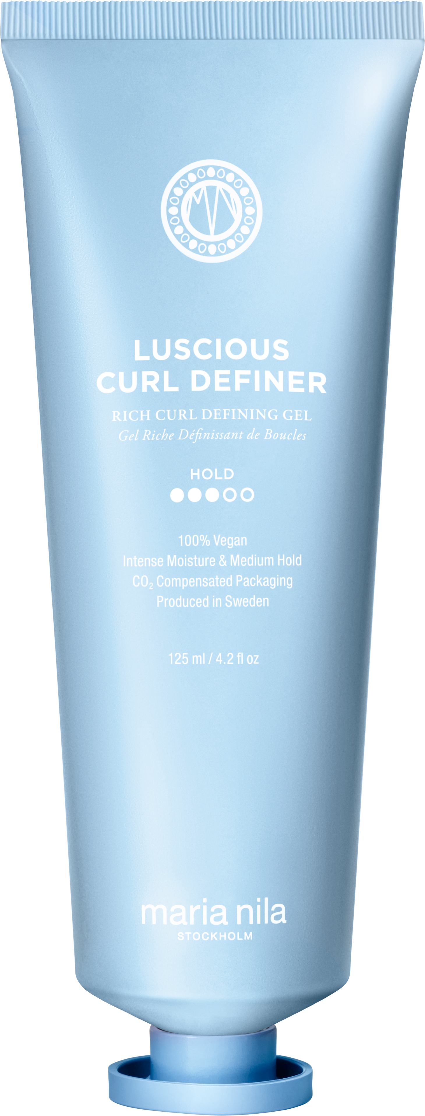 Coils & Curls Luscious Curl Definer znamke Maria Nila je posebej zasnovan za kodraste in valovite lase. Zagotavlja globoko hidratacijo, izboljšano definicijo in srednje močno obstojnost, ki jo je mogoče nadgraditi. Zahvaljujoč sestavinam, kot so karitejevo maslo, hialuronska kislina, glicerin, skvalan in aloe vera, gel globinsko neguje lase ter jih pusti mehke in brez frizza. Definer kodrov doda tudi sijaj in zaščiti barvo las z lastniškim kompleksom Color Guard. Gel ima sadno-cvetlični vonj, je primeren za vegane in ne vsebuje sulfatov, parabenov in silikonov.