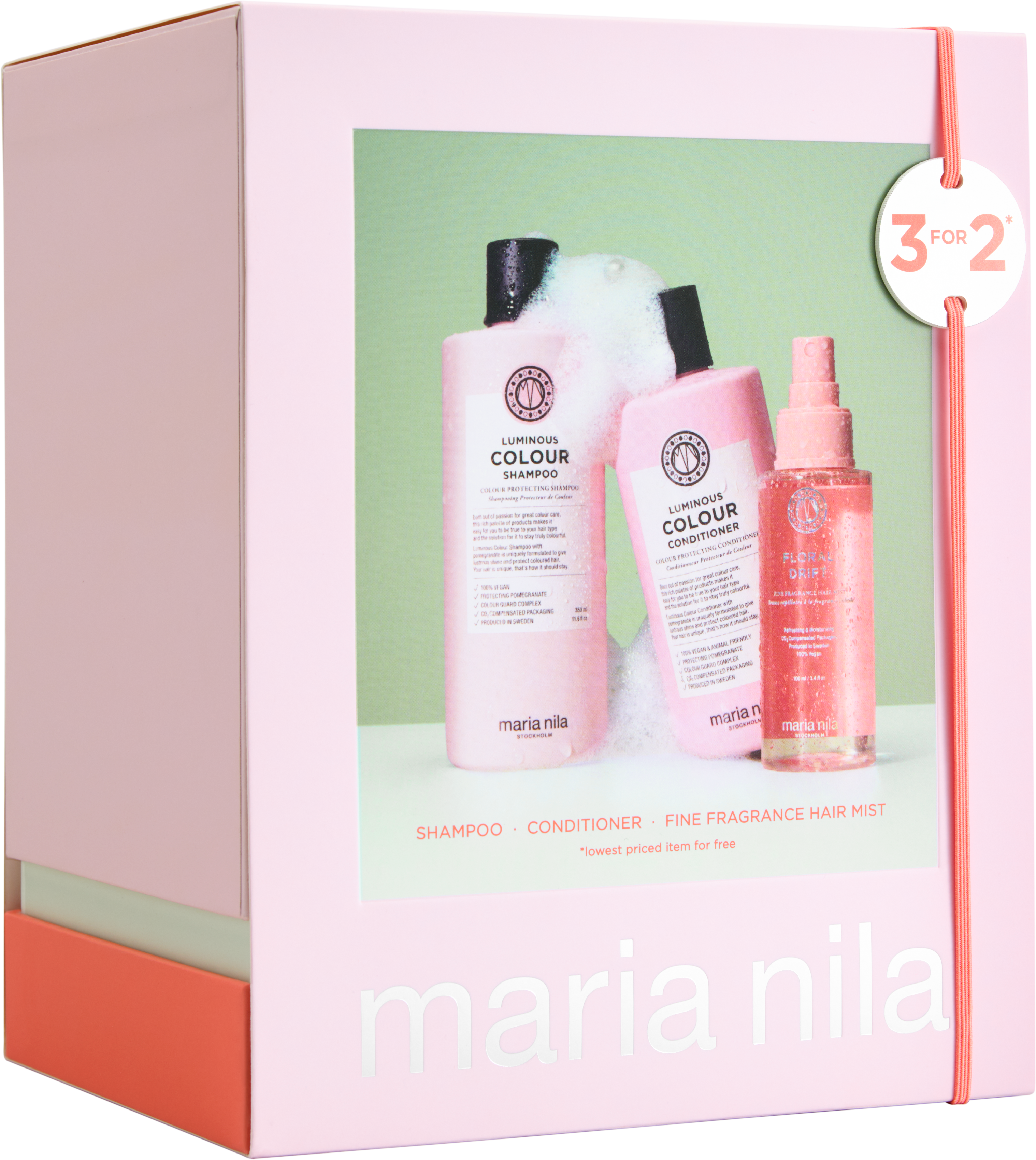 Komplet Holiday Box Luminous Color znamke Maria Nila je visokokakovosten komplet, ki združuje nego, dišavo in dizajn v privlačnem paketu po ugodni ceni. Trije izdelki so popolnoma usklajeni in zasnovani za barvane lase. Komplet, pakiran v škatli za večkratno uporabo z privlačnim dizajnom, je čudovito darilo za vaše najdražje.
