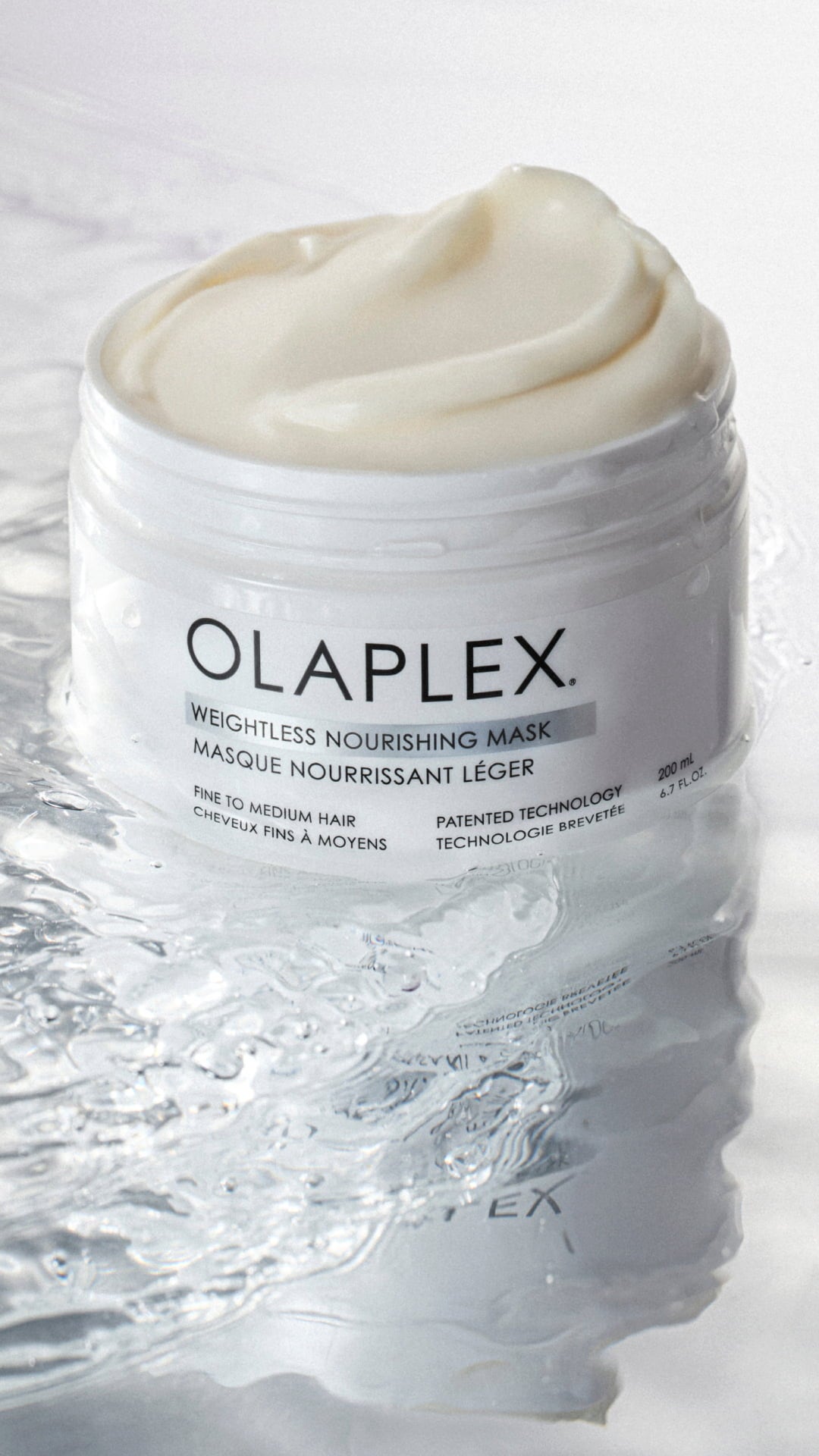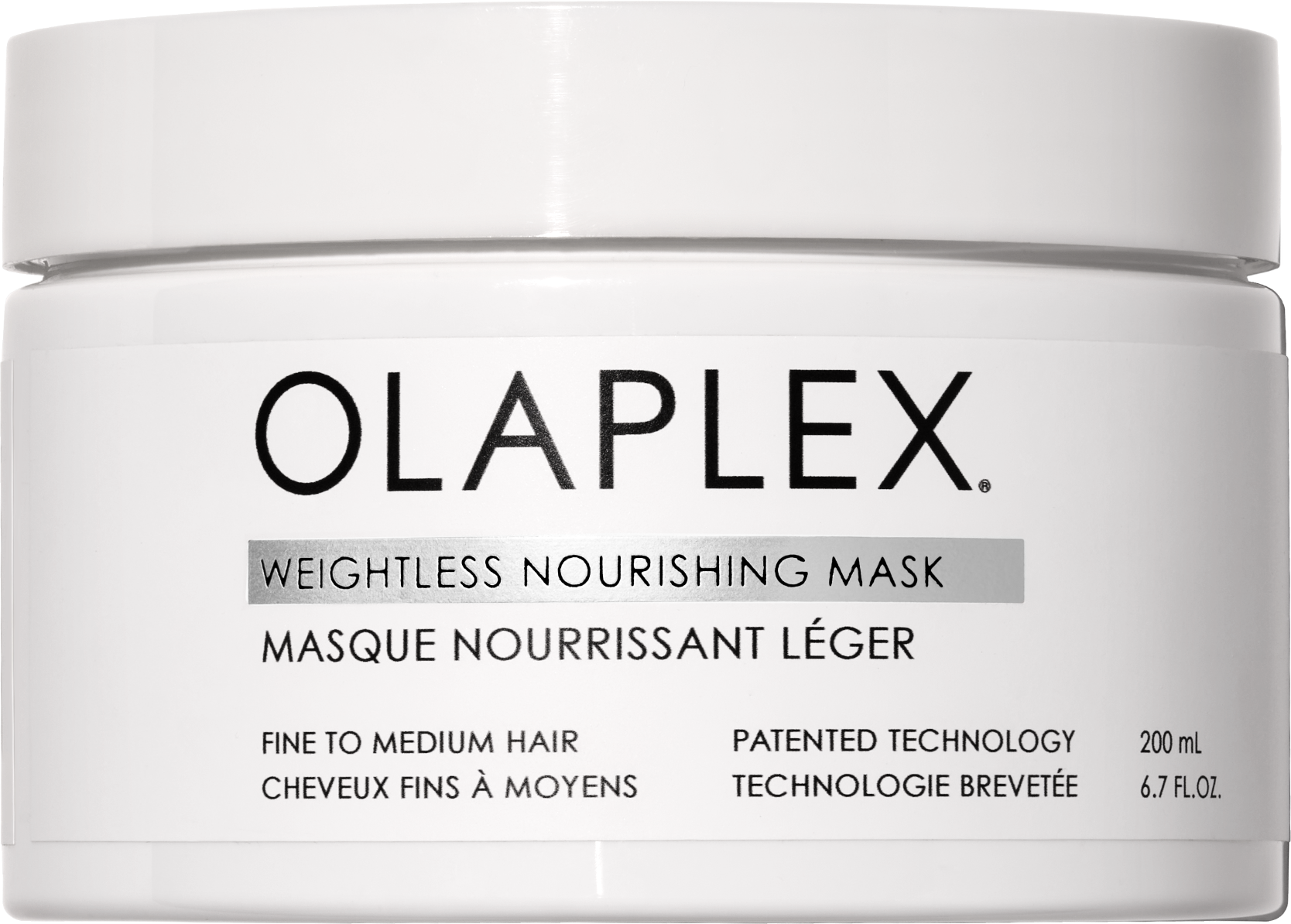 Weightless Nourishing Mask znamke Olaplex je posebej zasnovana za tanke do srednje tanke lase. Zahvaljujoč edinstveni tehnologiji OLAPLEX Biomimetic Cuticle Technology™ se vlaga lahko breztežno ujame v laseh in zapre lasno povrhnjico do pet umivanj. Maska preprečuje tudi lomljenje ter takoj doda volumen in sijaj.