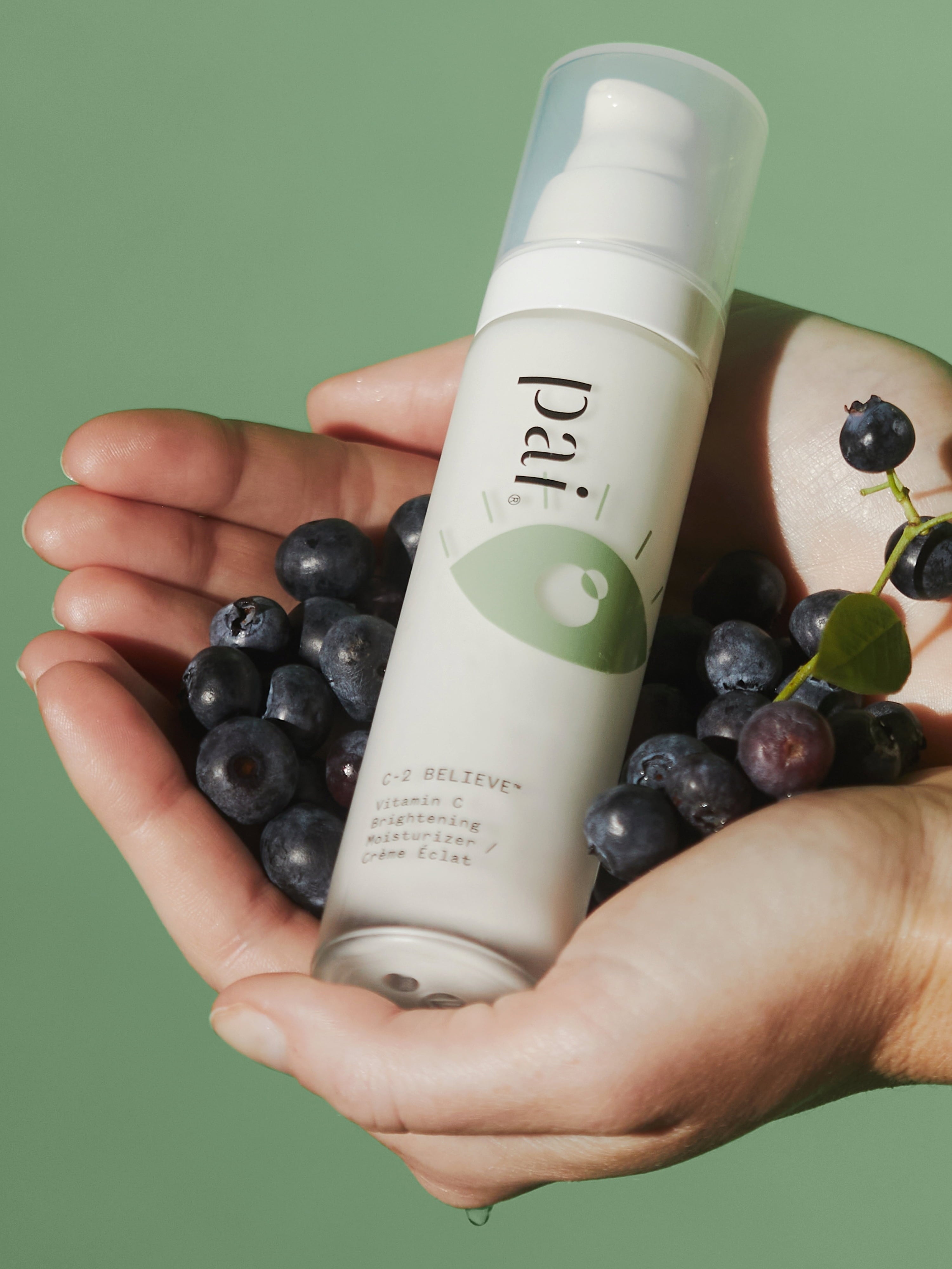 C-2 Believe Vitamin C Brightening Moisturizer znamke Pai Skincare ima lahko, svilnato formulo in vsebuje stabiliziran vitamin C v olju topni obliki, ki se ob nanosu razgradi in prodre v globlje plasti kože. Je močan antioksidant z posvetljevalnimi in zaščitnimi lastnostmi. V kombinaciji z recikliranimi izvlečki borovnic, hialuronsko kislino in prebiotičnim inulinom iz korenine cikorije je formula idealna za neenakomerno in pusto kožo - tudi za občutljivo kožo.
