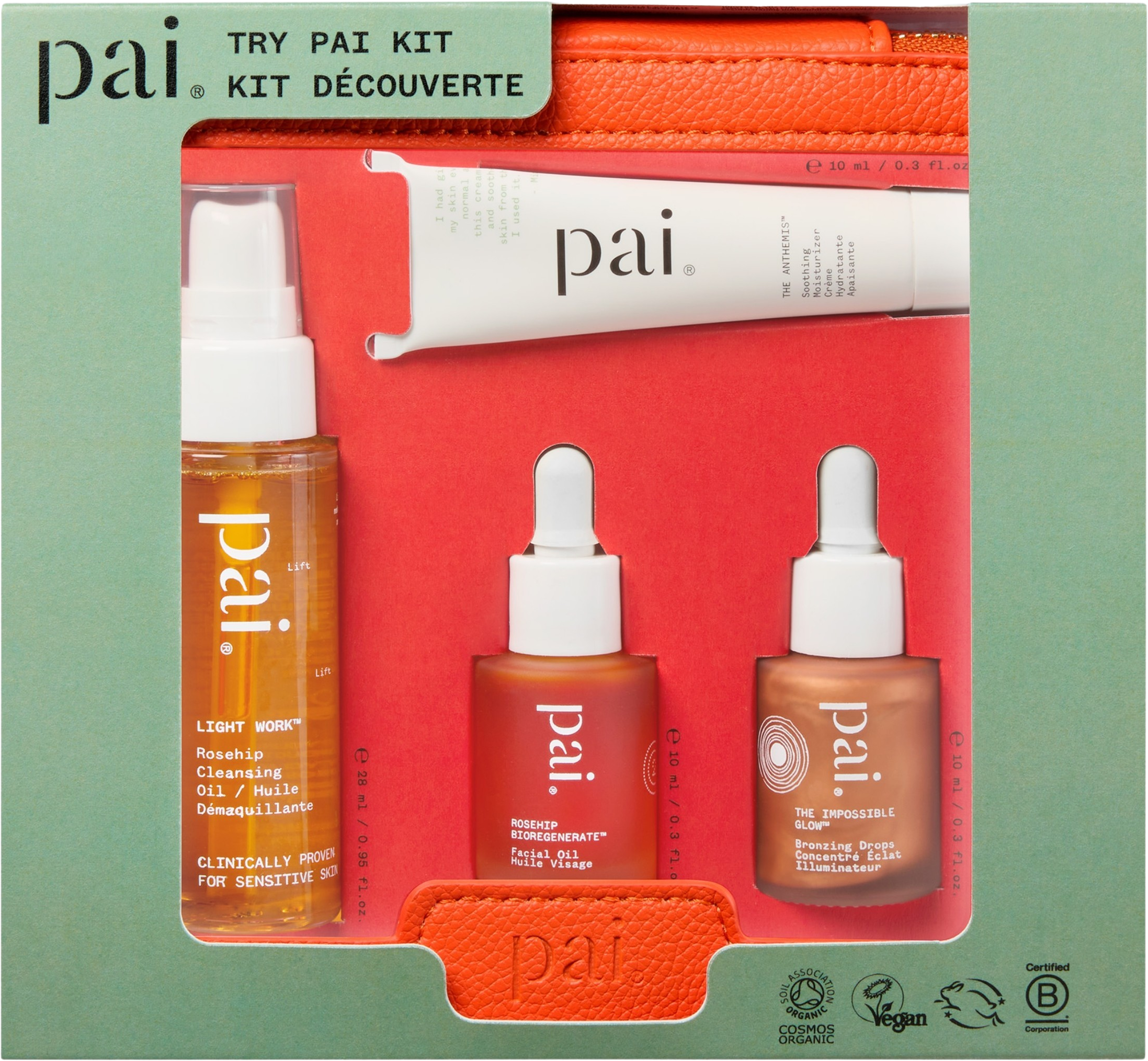 Ste slišali dobre stvari o kozmetiki znamke Pai Skincare, pa ne veste, kje začeti? So vam všeč izdelki, a potrebujete majhne velikosti za potovanje? Potem je ta set popoln za vas! Vsebuje štiri prodajne uspešnice, primerne za vse tipe kože, tudi občutljivo, ki intenzivno negujejo kožo, nahajajo pa se v čudoviti veganski toaletni torbici.
