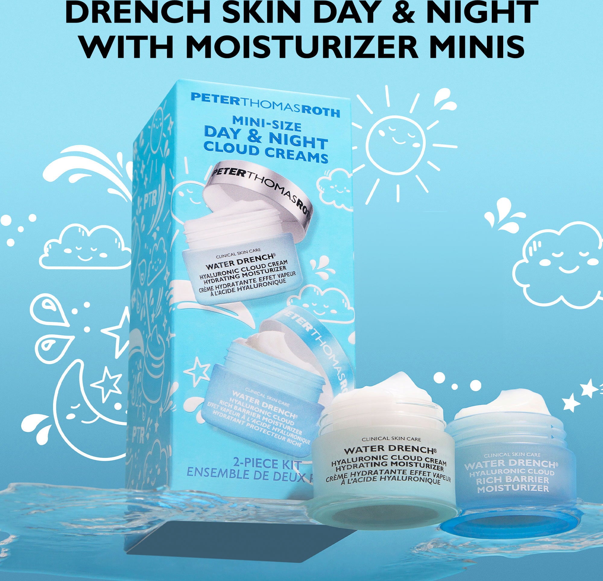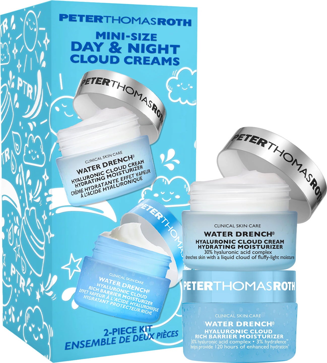 Waterdrench® Cloud Creams Holiday Kit znamke Peter Thomas Roth vsebuje dva vlažilna izdelka, ki sta primerna za vse tipe kože, še posebej pa pomagata pri ponovnem uravnoteženju suhe in dehidrirane kože.