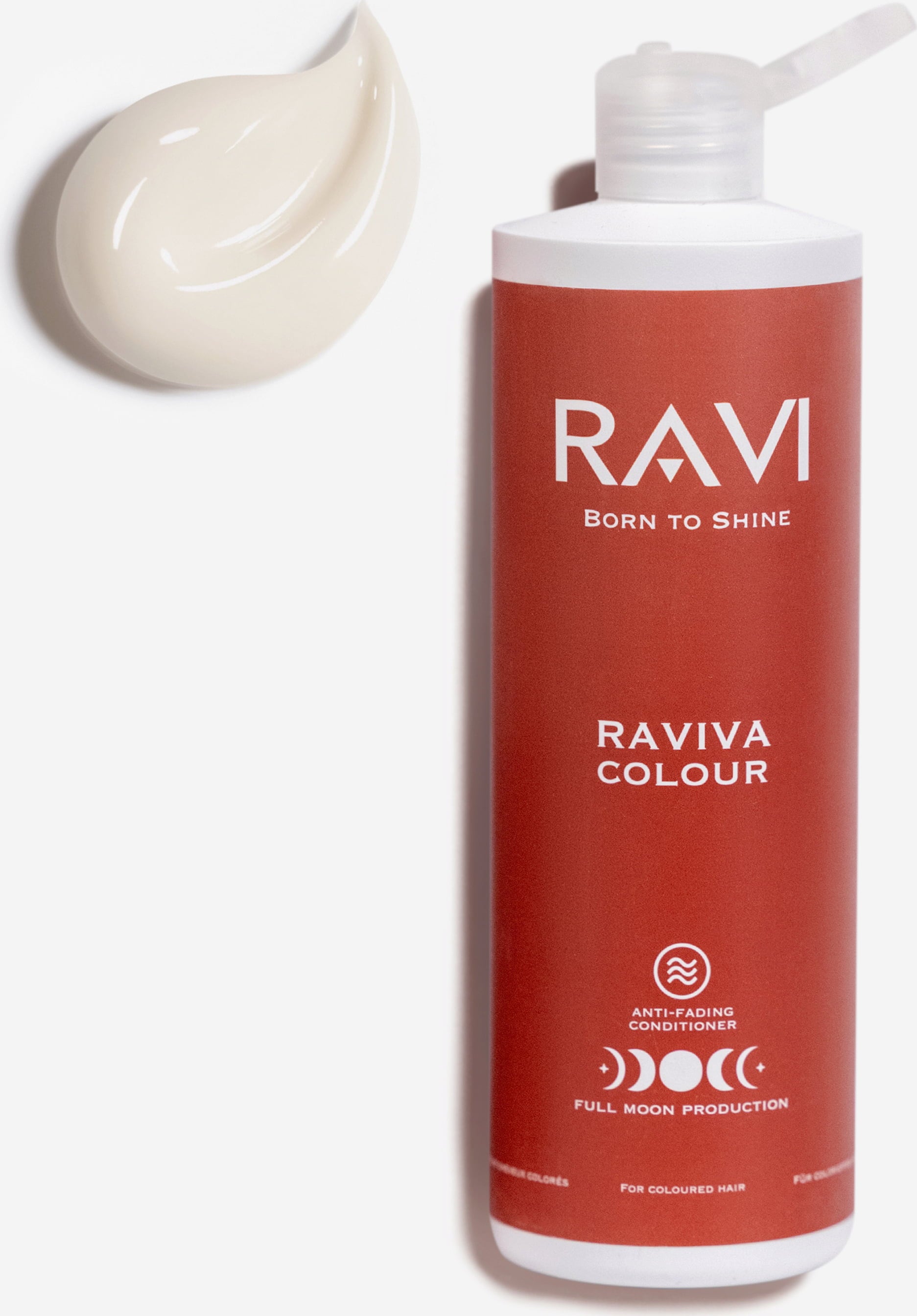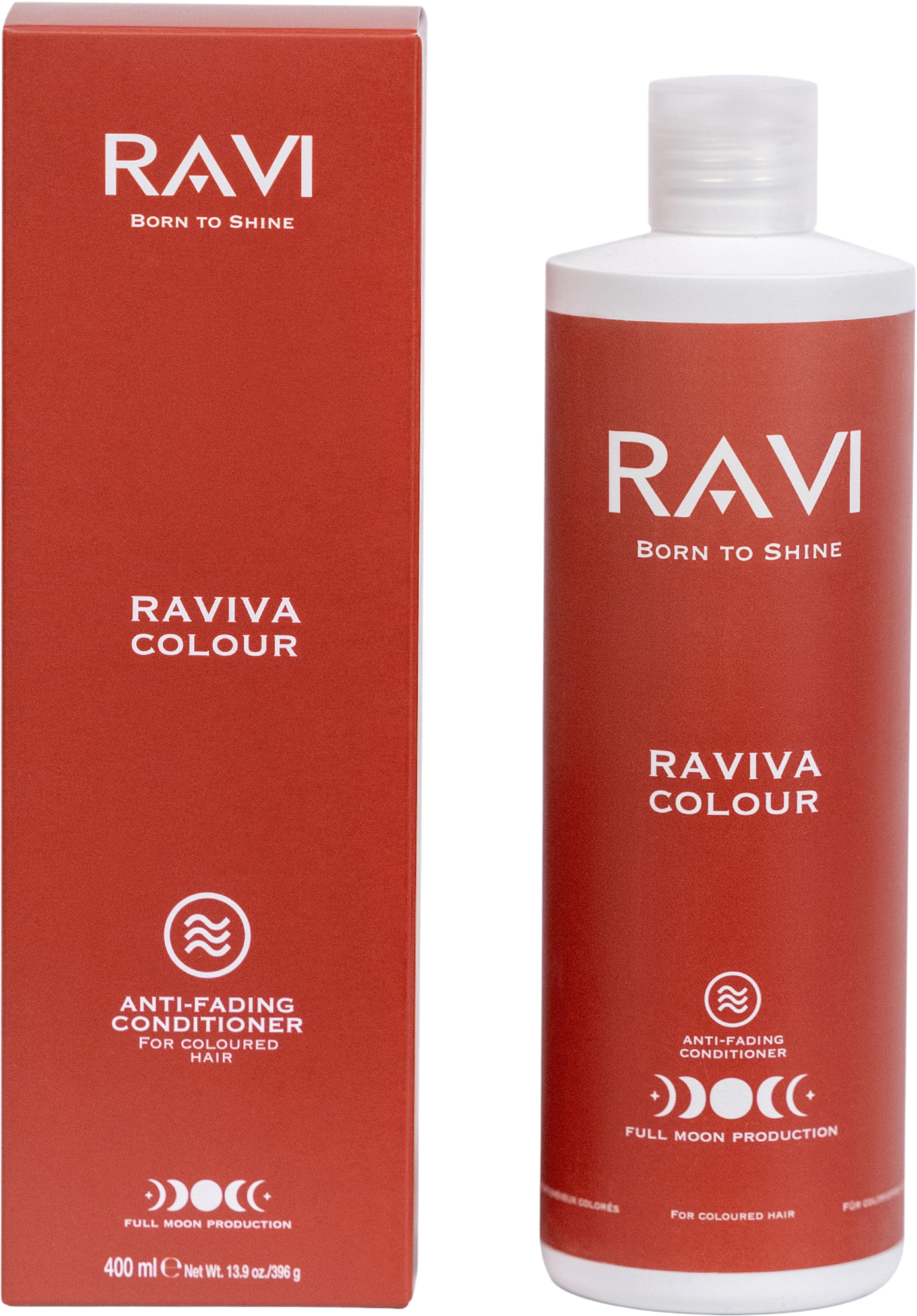Raviva Colour Anti-Fading Conditioner znamke RAVI je bil posebej razvit za barvane in obdelane lase. Vlaži, gladi in krepi lase, hkrati pa zaklene barvne pigmente za podaljšanje živahnosti barve. Tudi lasje, poškodovani zaradi sonca, oblikovanja ali onesnaženja, so videti zdravi in sijoči. Formula je obogatena s skrbno izbranimi sestavinami: izvlečkom granatnega jabolka, bogatim z antioksidanti, negovalnim vitaminom E, zaščitnim vitaminom C in vlažilnim glicerinom. To ščiti lase pred lomljenjem in izsušitvijo ter jih pusti sijoče, živahne in lahko oblikovane.