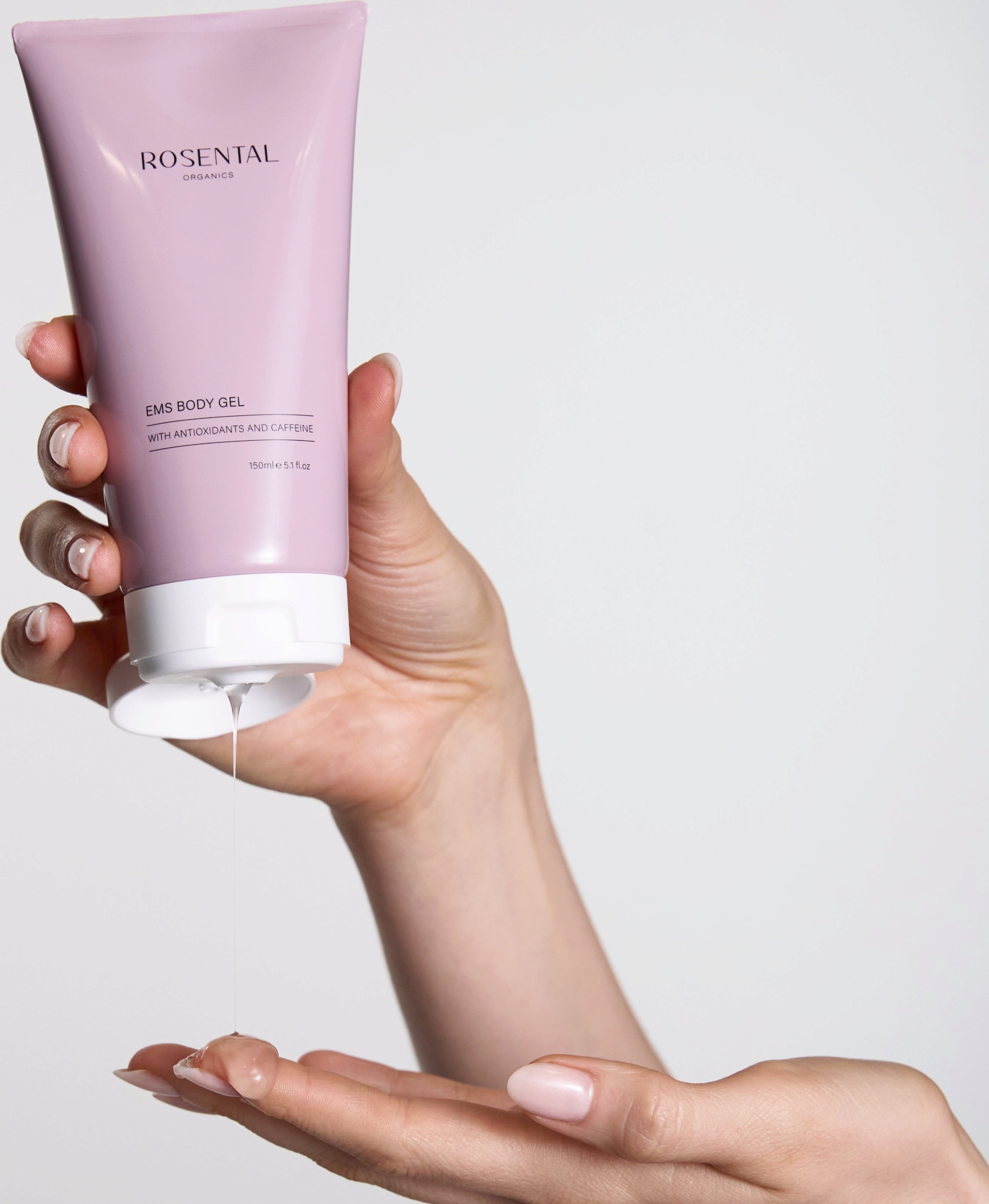 EMS Body Gel združuje učinkovite, klinično dokazane aktivne sestavine za nego telesa, ki se uporabljajo v sinergiji z električnimi EMS (Electrical Muscle Stimulation) napravami. Njegova formulacija vsebuje inovativen kompleks aktivnih sestavin s kofeinom, fermentiranim biotehnološkim izvlečkom planktona in mineralnim kompleksom. Njegova izjemno lahka gelska tekstura zagotavlja optimalno drsenje pri uporabi z EMS napravami in izboljša prevodnost mikrotokovnih impulzov za intenzivnejšo absorpcijo aktivnih sestavin.