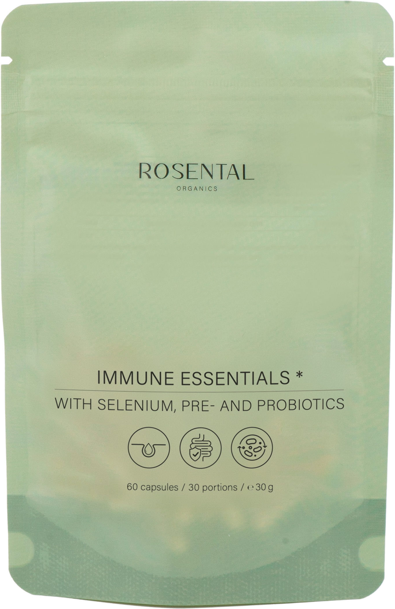 Z izdelkom Immune Essentials se Rosental Organics osredotoča na prehransko dopolnilo, saj, kot vsi vemo, prava lepota prihaja od znotraj. Te naravne kapsule, obogatene z antioksidantom selenom ter prebiotiki in probiotiki, spodbujajo ravnovesje in absorpcijo hranil ter ščitijo vašo kožo pred stresnimi dejavniki in agresivnimi vplivi okolja. Vaša polt bo znova zasijala od svežine in samozavesti.