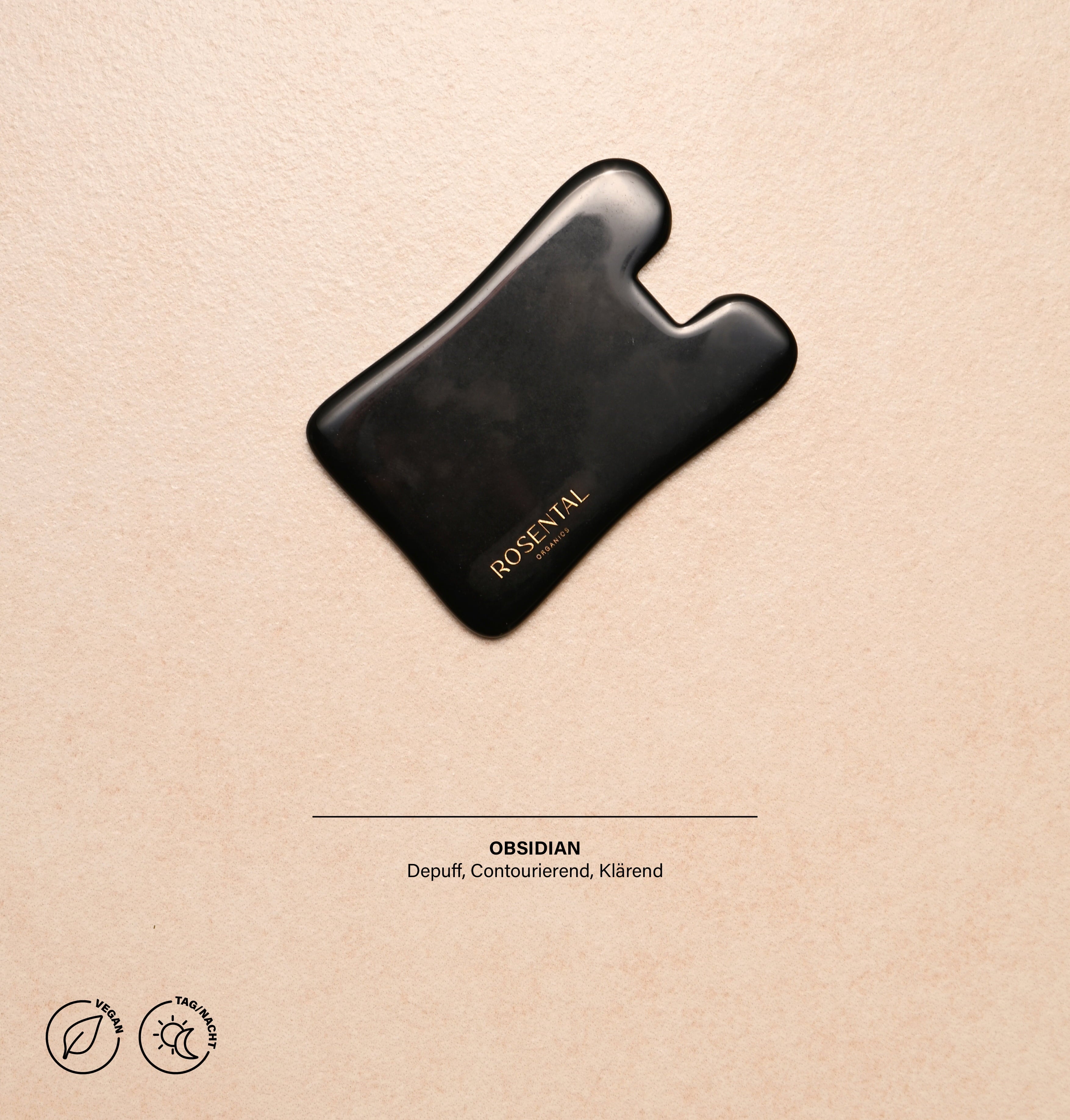 Obsidian Gua Sha znamke Rosental Organics prijetno masira obraz in nudi občutek sprostitve v stresu vsakdanjega življenja. Hkrati masažni pripomoček učvrsti kožo in ji podari sijočo polt.