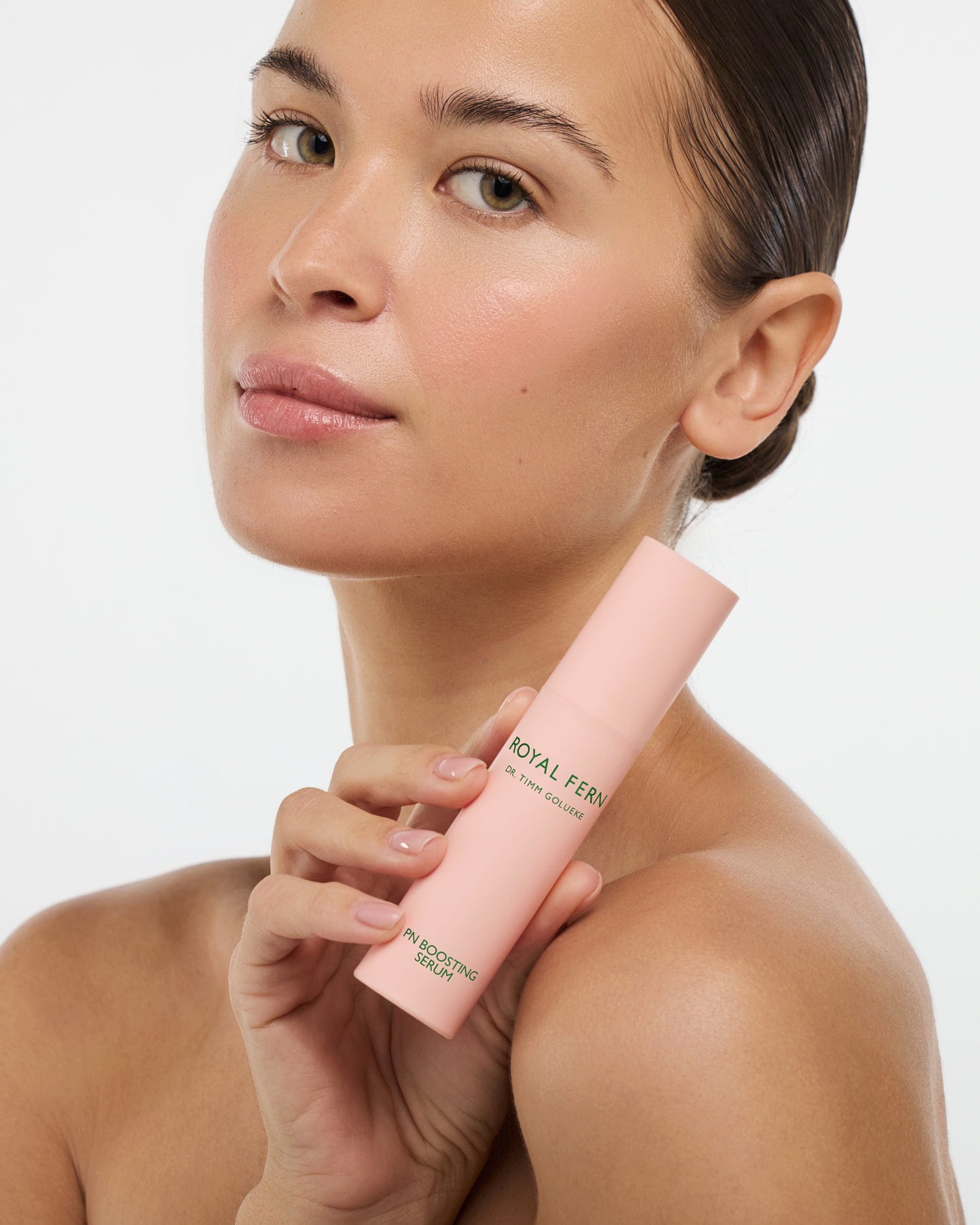 PN Boosting Serum znamke Royal Fern združuje sodobne sestavine z dermatološkim strokovnim znanjem za optimalno spodbujanje naravne obnove kože. Visokokakovostni polinukleotidi spodbujajo sintezo kolagena in lahko izboljšajo elastičnost kože, kar zmanjša videz drobnih gubic in linij. Dodatek bio-placente podpira celično regeneracijo, zaradi česar je utrujena in obremenjena koža takoj osvežena. Serum zagotavlja intenzivno hidratacijo in revitalizira globoko v koži za bolj mladosten in sijoč ten.