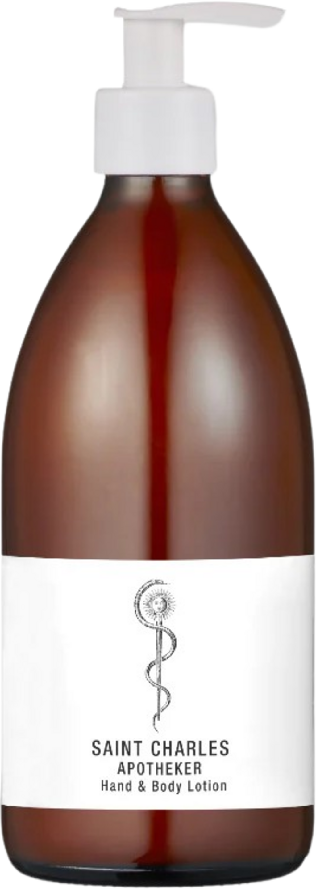 Losjon za roke in telo Apothecary je narejen po preizkušeni formuli Saint Charles. Tako kot milo iz linije Apothecary vsebuje vlažilni sok aloe vere in kožo intenzivno neguje s karitejevim maslom in mandljevim oljem. To preprečuje izgubo vlage, ne da bi koža ostala mastna. Naravna eterična olja, pridobljena iz sivke, evkaliptusa, cimeta in timijana, zaokrožijo formulo in poskrbijo za posebno dišavno kompozicijo.