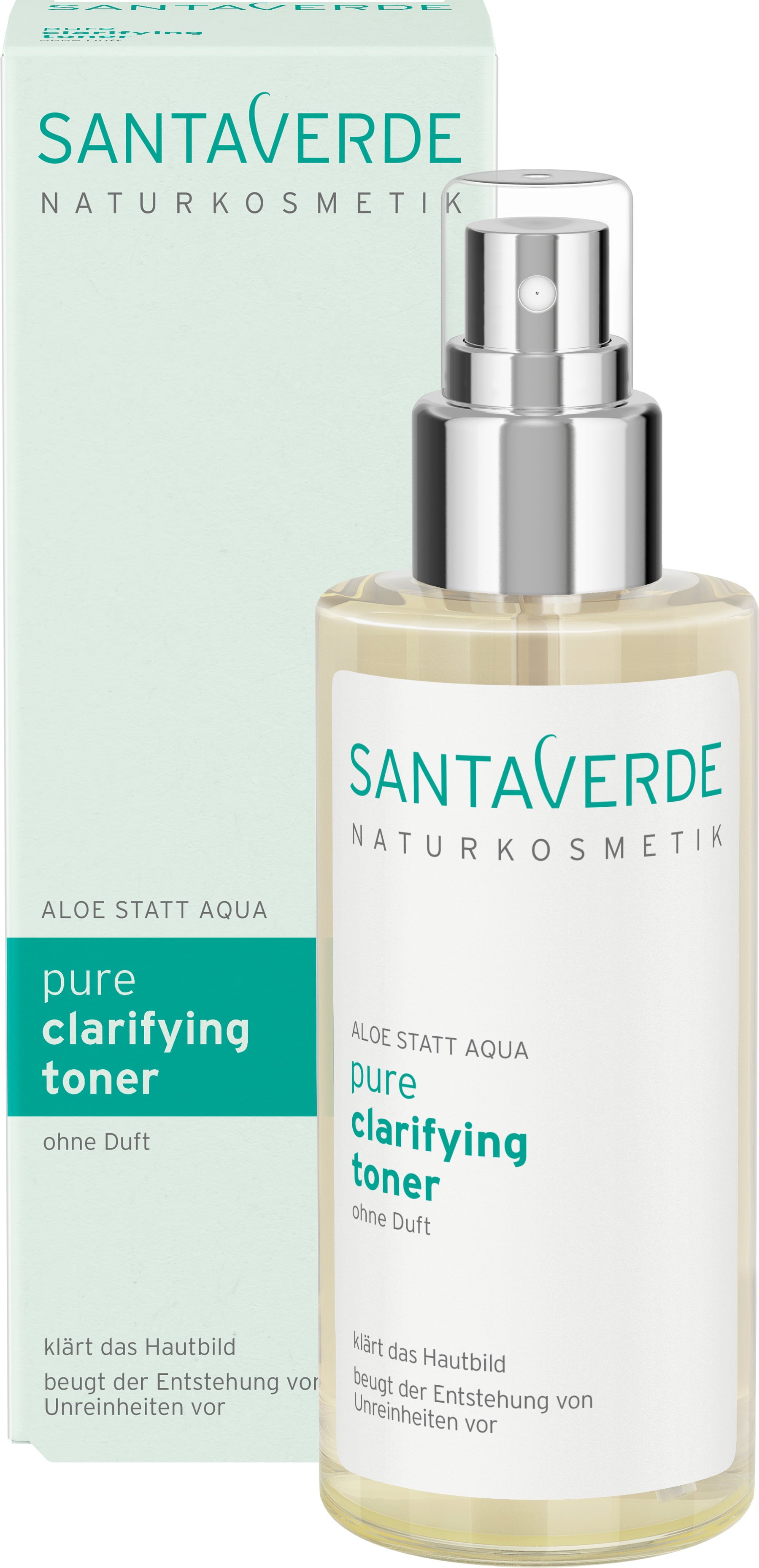 Za čudovito svežo in čisto polt priporočamo čistilni tonik brez dišav znamke Santaverde, še posebej za občutljivo in k nepravilnostim nagnjeno kožo. Uravnava proizvodnjo sebuma in učinkovito preprečuje nadaljnje izbruhe aken. Koža je optimalno navlažena in okrepljena s hidrolatom timijana. Izvleček cvetov mačehe in salicilna kislina (iz vrbovega lubja) spodbujata čistočo, sok aloe vere pa toniku zagotavlja pomirjujoče lastnosti. To zagotavlja, da tudi neprijetna draženja kože nimajo nobene možnosti.