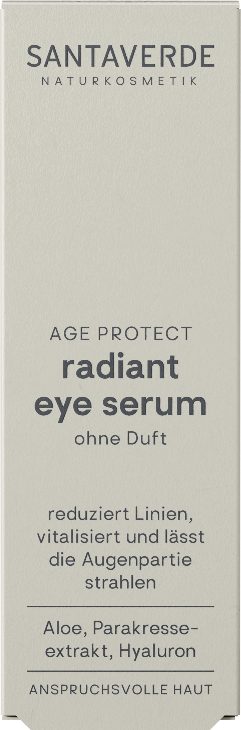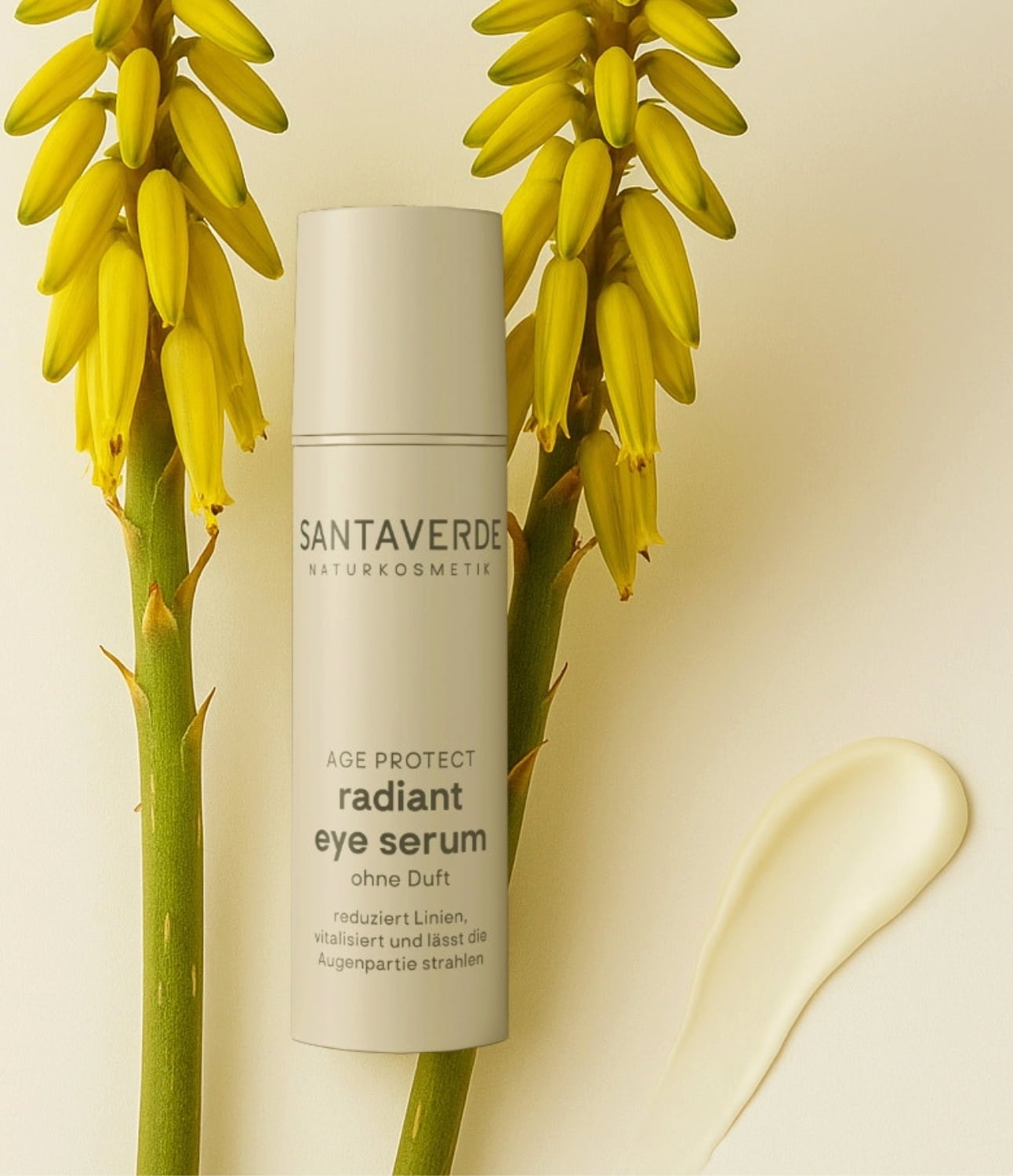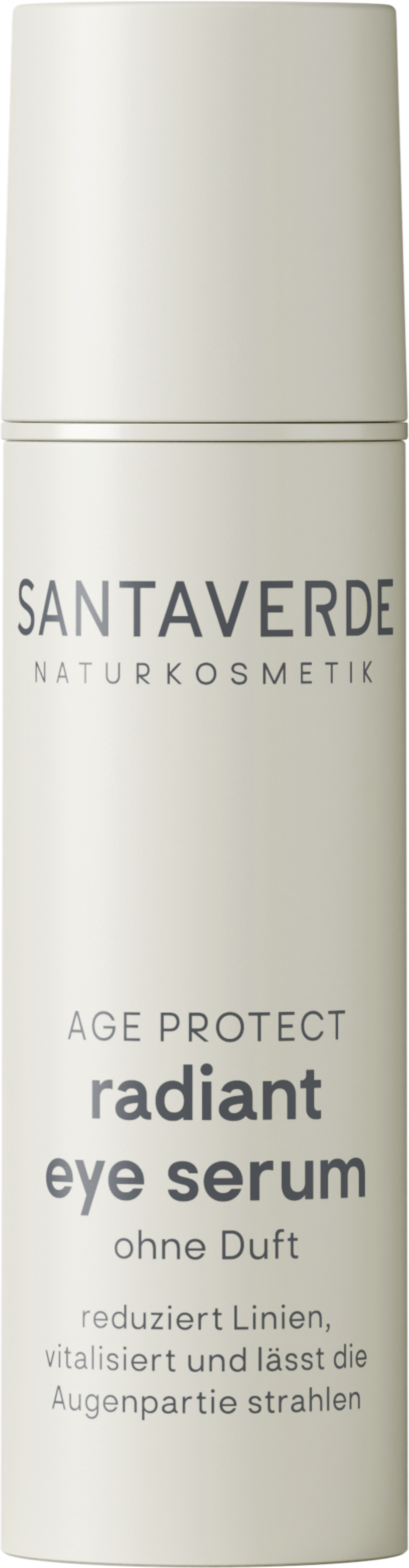 Radiant Eye Serum brez dišav znamke Santaverde, ki vsebuje aloe vero, izvleček kapucinke, ektoin in hialuronsko kislino, je bil posebej razvit za zahtevno kožo. Ponuja gladilne in revitalizirajoče lastnosti ter zapolnjuje gubice in linije za svež in sijoč videz.