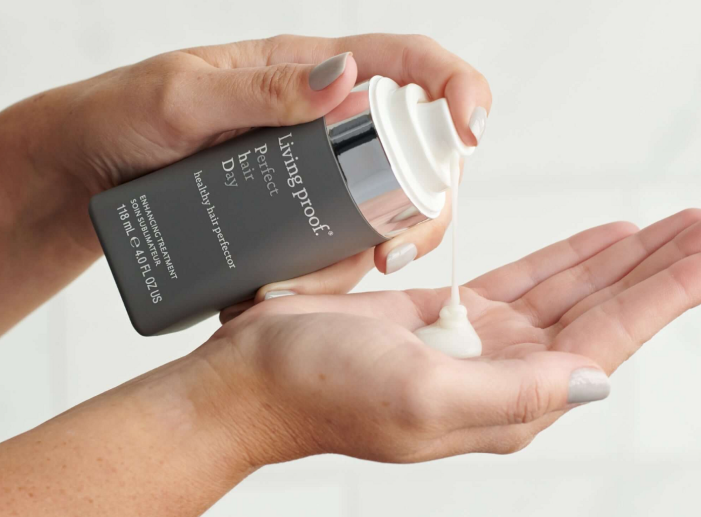 Perfect hair Day™ Healthy Hair Perfector znamke Living Proof je lahka nega, ki obnovi zunanjo zaščitno plast las, zaradi česar so suha, krhka in poškodovana lasna vlakna mehkejša, sijoča in lažje obvladljiva. Formula se hitro vpije in vsebuje negovalno sredstvo, ki poveča sijaj in zagotavlja antioksidante za zaščito las pred UV-žarki, onesnaženjem in drugimi škodljivimi okoljskimi dejavniki. Nega obnavlja lipide las in ščiti pred vlago, da prepreči frizz. Prav tako izboljša obvladljivost in oblikovanje.