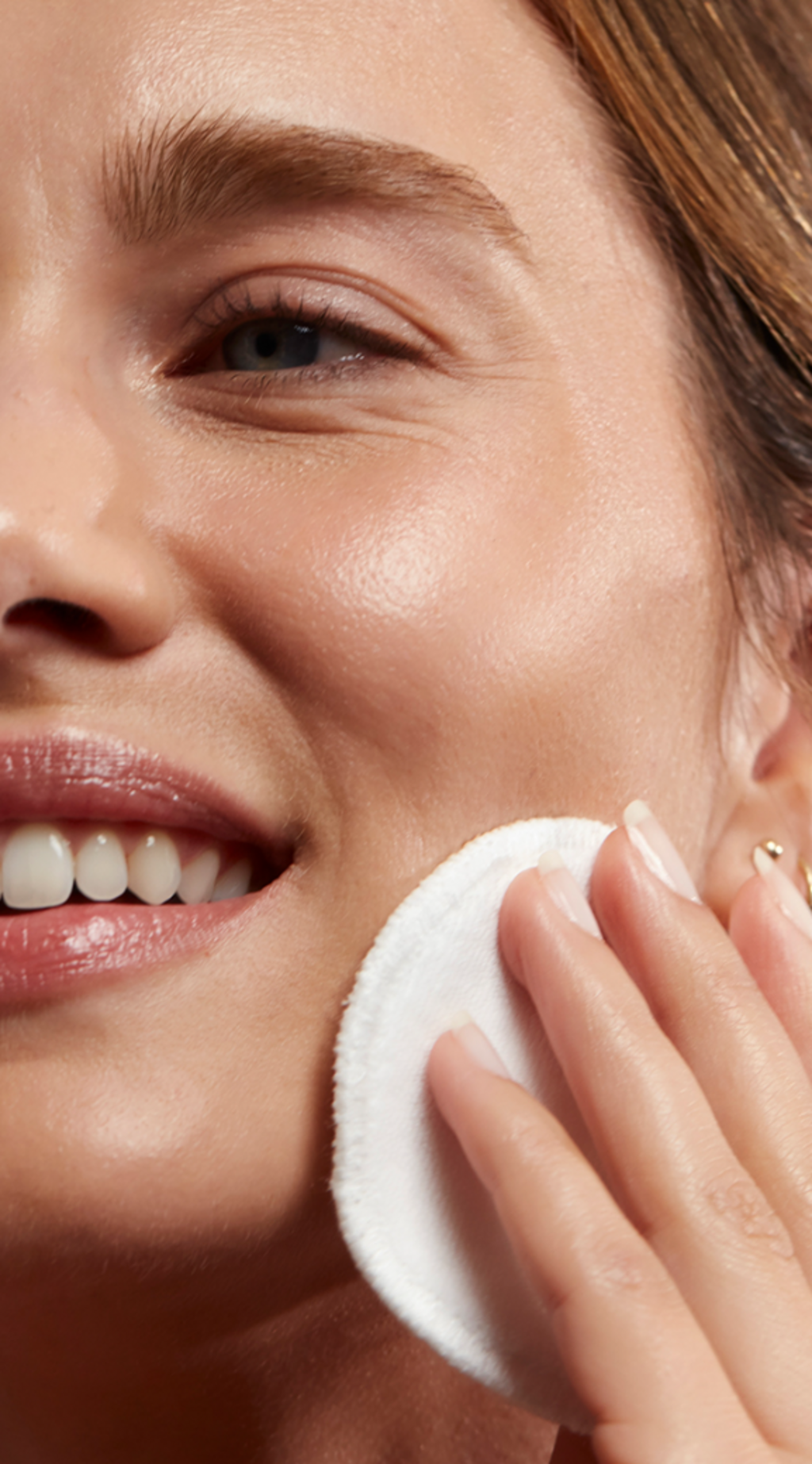 - Očiščeno kožo obraza in vratu nežno obrišite z vatno blazinico.
