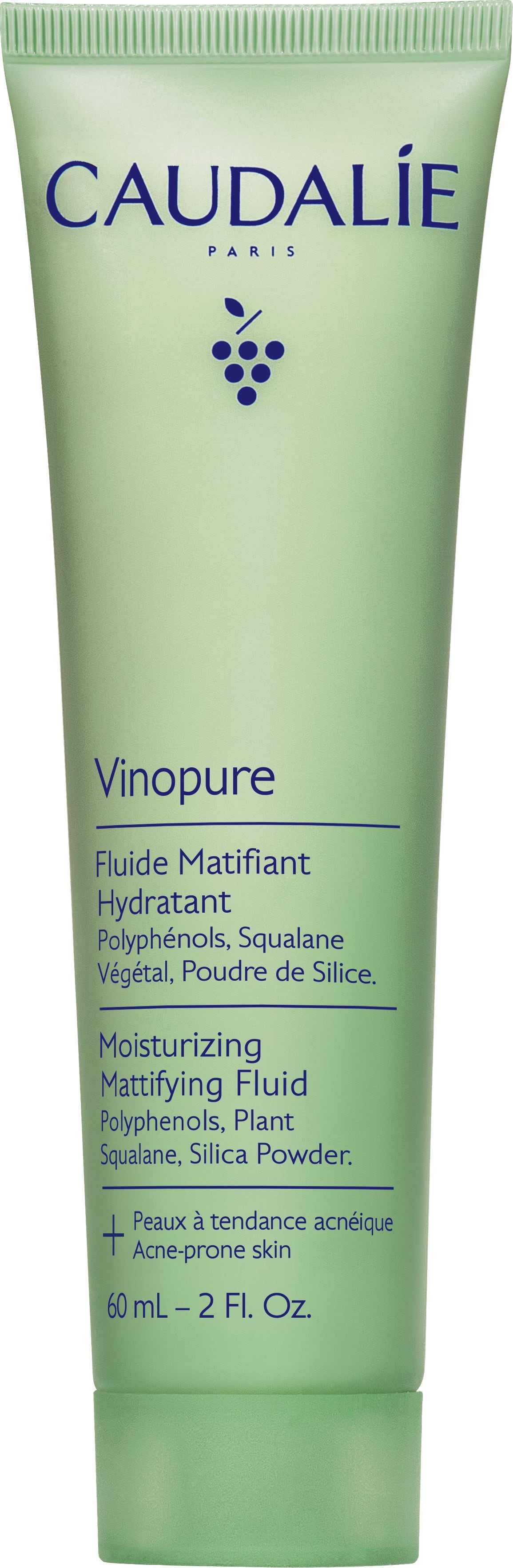 Vinopure Moisturizing Mattifying Fluid znamke Caudalie se bori proti nepravilnostim, zoži pore in koži zagotavlja prepotrebno vlago. Lahka kremna tekstura vsebuje učinkovito formulo z aktivnimi sestavinami, kot so silicijev prah, krepilni rastlinski skvalan in antioksidativno bogati polifenoli iz grozdnih pečk. Tako pomaga koži ponovno vzpostaviti ravnovesje, jo optimalno navlaži in poskrbi za čist, negovan sijaj. Posebej primeren je za nečisto in mastno kožo, saj deluje čistilno, matirno in pomirjujoče.
