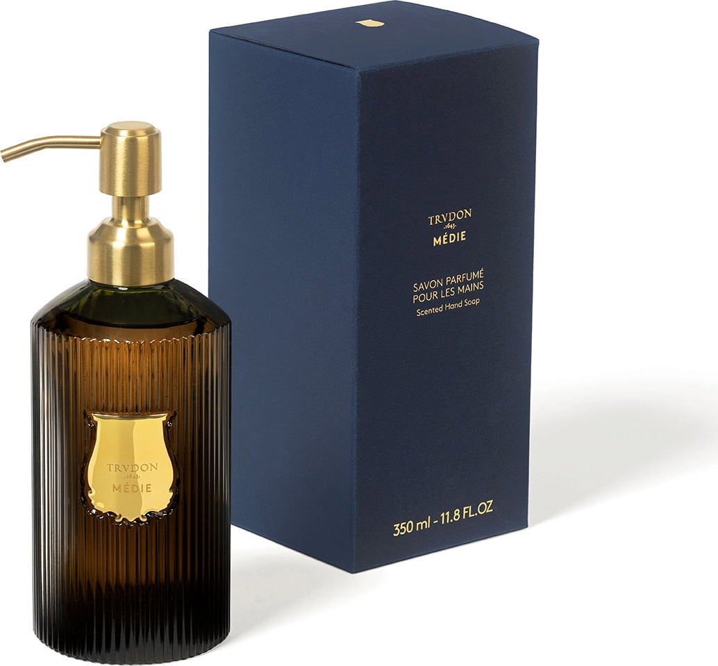 Hand Liquid Soap Medie znamke Trudon nežno očisti roke, ter koži in kopalnici podari tudi edinstven vonj. Steklenička je polnilna in je čudovit razkošen dekorativni predmet, ki polepša vsako kopalnico ali stranišče.