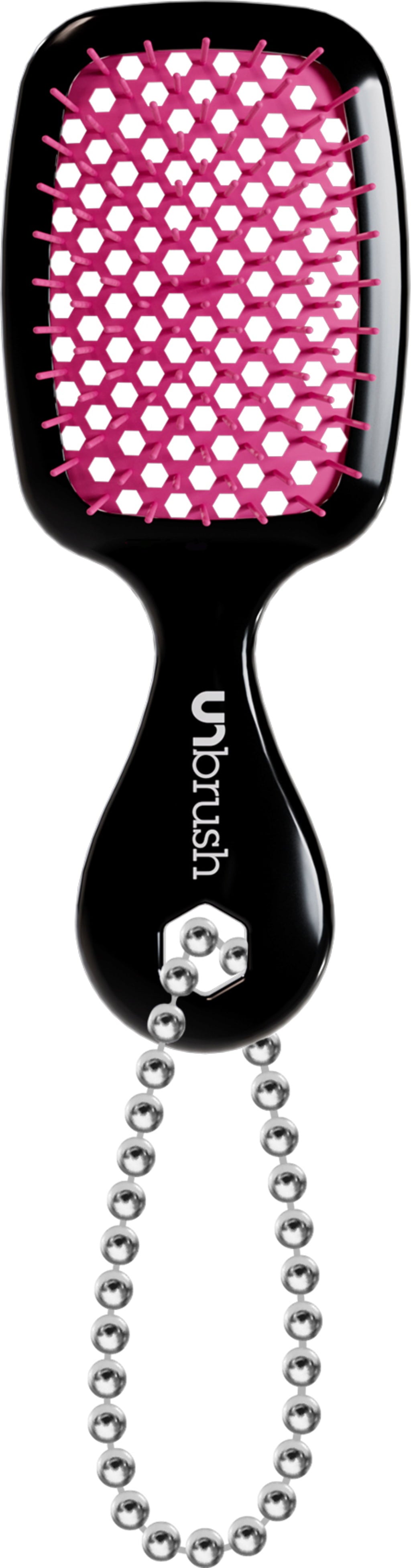 Poslovite se od Bad Hair Days in bolečega cukanja! Detangling Hair Brush Super Mini Keychain znamke UNbrush je novi nepogrešljiv dodatek za vašo grivo. S priročno, integrirano verižico se krtača enostavno pritrdi na ključe ali torbo, tako da lahko osvežite svoje lase kadar koli in kjer koli. Domiselna mešanica 105 ščetin Soft-Flex in Ultra-Flex v dveh različnih dolžinah gladko drsi skozi vsak vozel brez trganja. Tudi najbolj neukrotljivi lasje so temeljito razvozlani in zaščiteni pred lomljenjem.