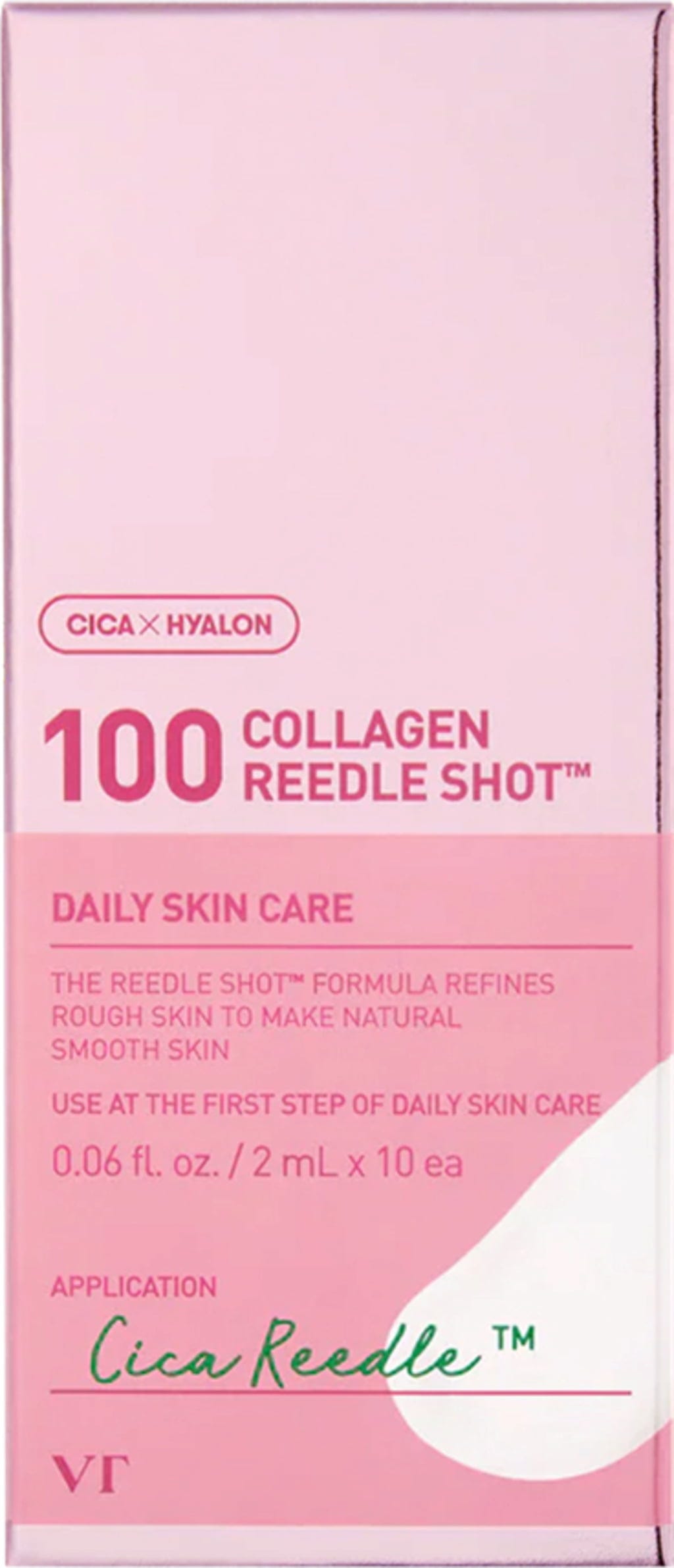 Collagen Reedle Shot 100 je dnevni serum za nego kože, zasnovan za izboljšanje čvrstosti in elastičnosti kože. Z inovativno tehnologijo mikroigel dovaja kolagen z nizko molekulsko maso neposredno na površino kože, kar ima za posledico večjo čvrstost in bolj poln videz. V kombinaciji s patentiranim kompleksom Cicahyalon™ serum kože ne le vlaži, temveč zagotavlja tudi bolj gladko in enakomerno polt. Serum izkorišča moč izvlečka kolagena 500 Da, katerega izjemno majhna molekularna velikost omogoča globljo absorpcijo v kožo. Cica Reedle™ deluje kot ojačevalec: mikrodelci izboljšajo teksturo kože, odstranijo odmrle kožne celice in zagotovijo optimalno absorpcijo sestavin. To koži ne zagotavlja le kolagena, ampak jo tudi intenzivno vlaži in vidno učvrsti. Formulo dodatno izboljšuje izvleček mlečnih beljakovin, ki krepi kožno pregrado, uravnava ravnovesje olja in vlage ter pusti kožo prožno. Vitamin E izboljša absorpcijo kolagena in jo ščiti pred zunanjimi vplivi. Zaradi lahke, nelepljive teksture je prijeten za uporabo in primeren za vsakdanje življenje, kar omogoča enostavno vključitev seruma v vašo jutranjo in večerno rutino nege kože.