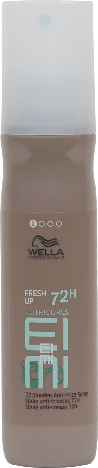 Pršilo EIMI Fresh Up znamke Wella Professionals je zvest spremljevalec za osvežitev kodrov in valovitih las čez dan. Osvežilno pršilo takoj reaktivira strukturo kodrov ter jim podari novo definicijo in sijoč sijaj. Zahvaljujoč inovativnemu kompleksu Nourish-In z izvlečkom pšeničnih otrobov in jojobinim oljem so lasje do 72 ur oskrbljeni z dragoceno vlago, krepavost pa je učinkovito obvladana. Lahkotna formula vlago zaklene globoko v notranjost in poskrbi za pomirjeno površino las, ki je na tipalo čudovito mehka. S stopnjo utrjevanja 1 ohranite naravno prožnost in elastičnost kodrov brez obteževanja. Izdelek je popoln za hitro osvežitev pričeske, da videz v vsakem trenutku ostane lahkoten, definiran in mehak.