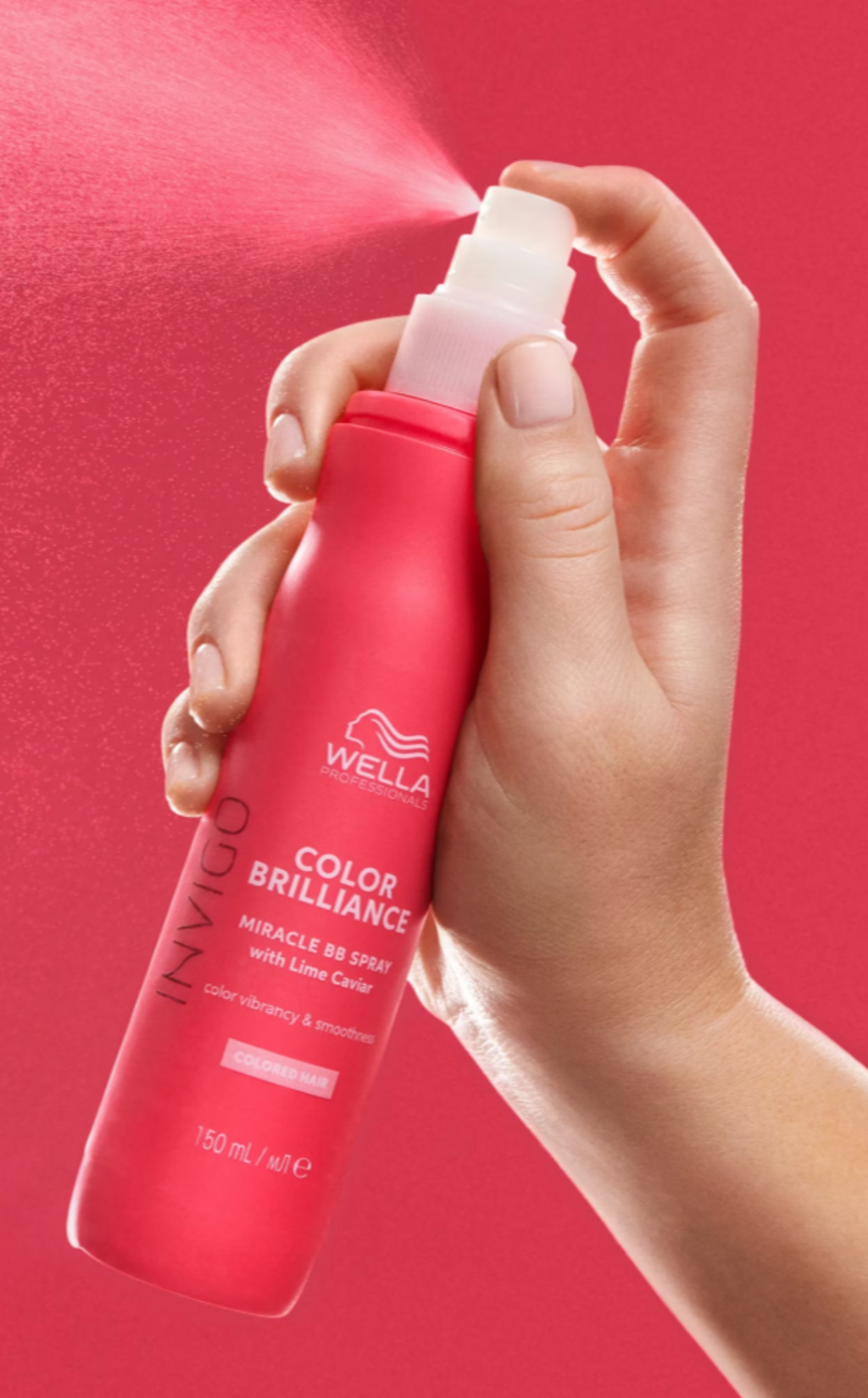 Invigo Brilliance Miracle BB Spray znamke Wella Professionals je vaša skrivnost za takojšnjo sijočo barvo in mehkobo barvanih las. Lahki negovalni sprej brez izpiranja (leave-in) vašo grivo intenzivno navda z vlago in poskrbi, da briljantnost vaše barve zares zasije. Zahvaljujoč inovativni formuli z limetinim kaviarjem in dragocenimi antioksidanti so lasje učinkovito zaščiteni pred bledenjem, hkrati pa čudovito zglajeni. Sprej deluje kot negovalni balzam, ki ukroti krepast videz (frizz) in preprečuje nadležno vozlanje las, ne da bi jih pri tem obtežil. Preprosto ga po pranju razpršite po dolžini las in uživajte v svilenkastu občutku ter živahni energiji svoje barve – za videz, ki je vsak dan videti kot svež iz salona.